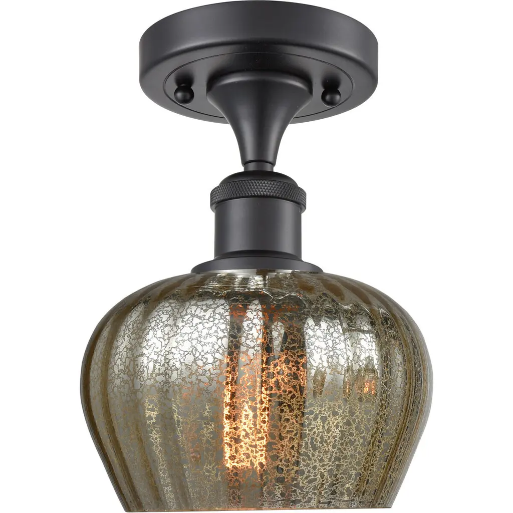 Ballston Fenton Led 7 Inch Black Antique Brass Semi-Flush Mount Ceiling Light In Mercury Glass, Ballston
