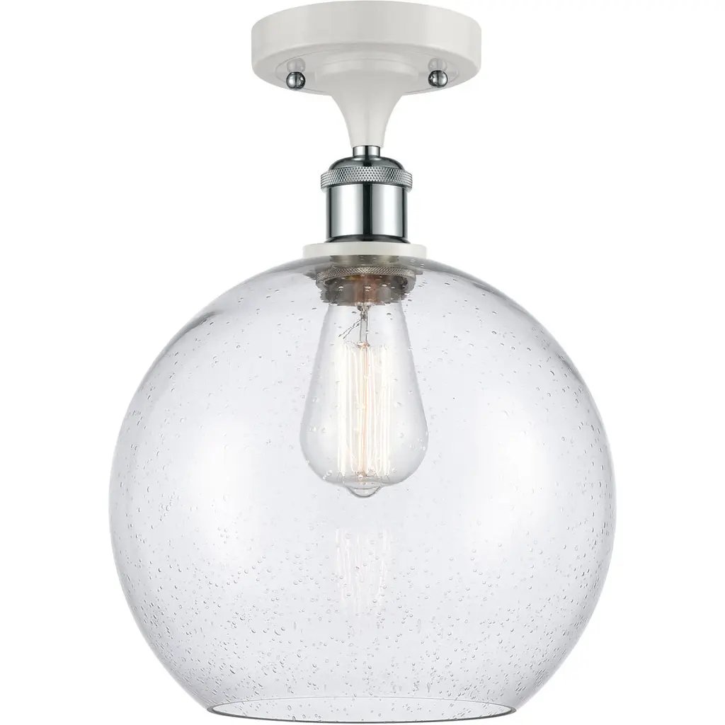 Ballston Large Athens 1 Light 10 Inch Matte Black Semi-Flush Mount Ceiling Light In Seedy Glass, Ballston