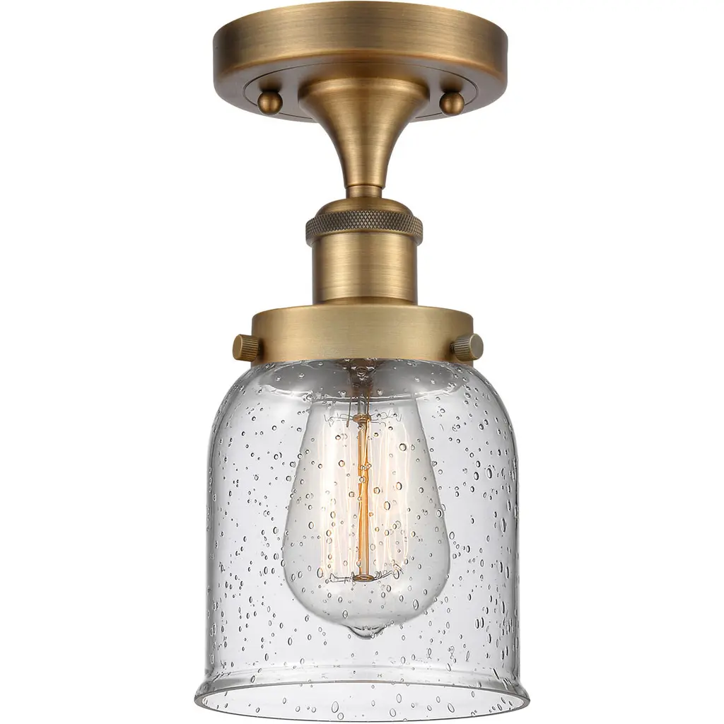 Ballston Large Cone 1 Light 8 Inch Antique Copper Semi-Flush Mount Ceiling Light In Seedy Glass