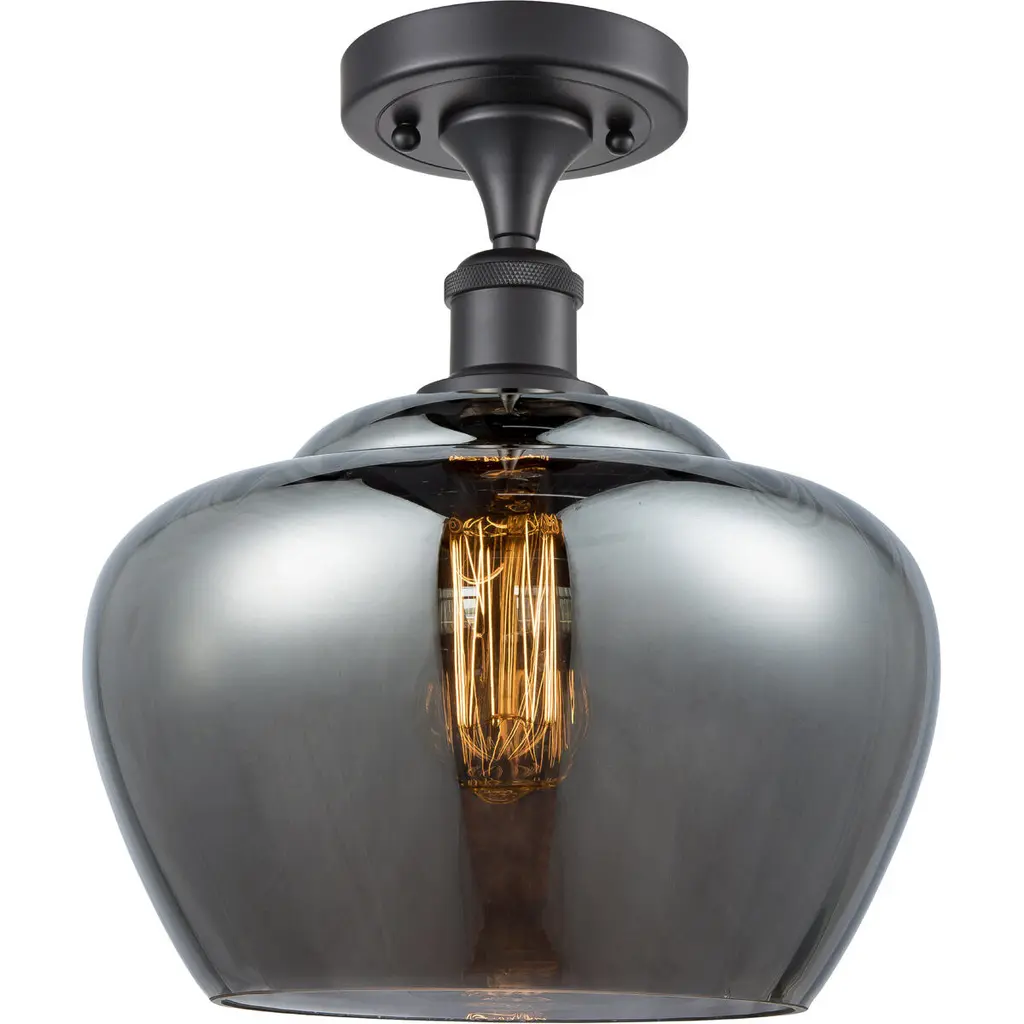 Ballston Large Fenton 1 Light 11 Inch Antique Brass Semi-Flush Mount Ceiling Light In Incandescent, Plated Smoke Glass, Ballston