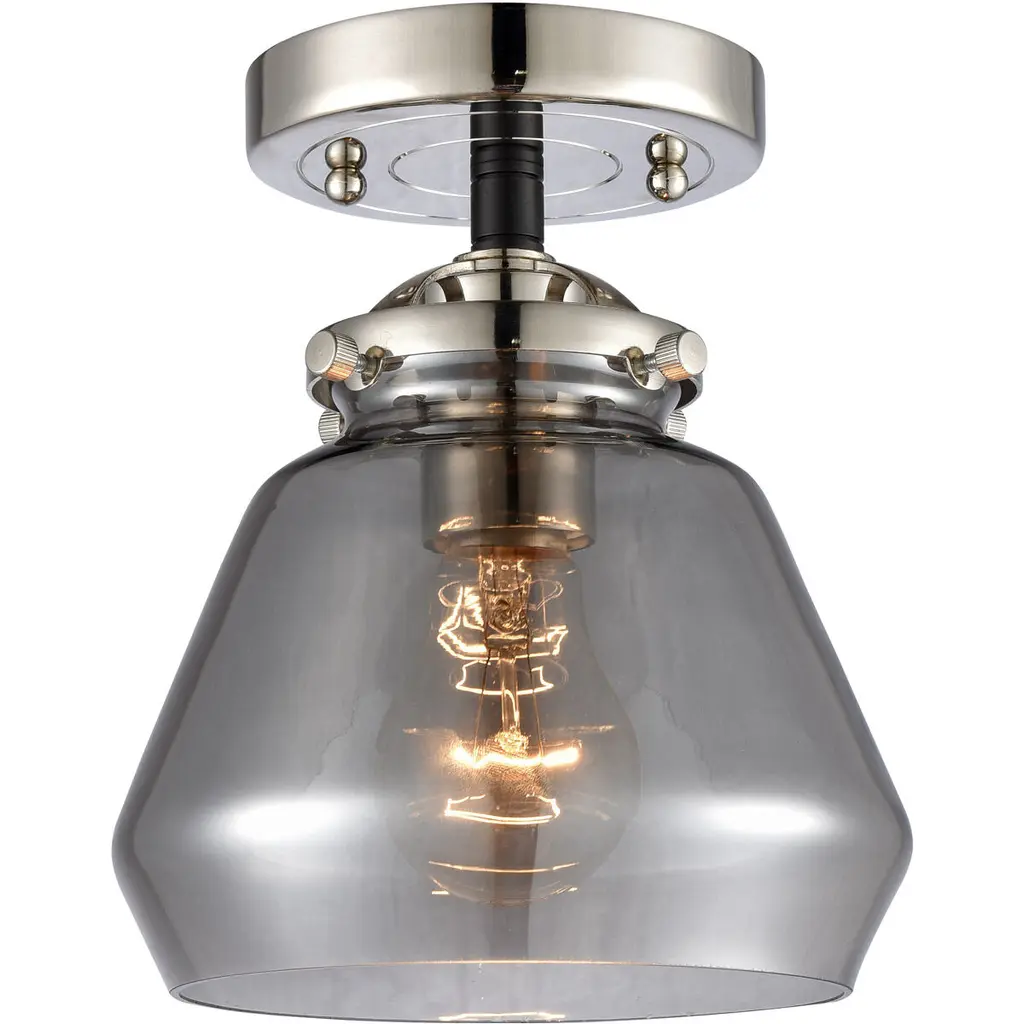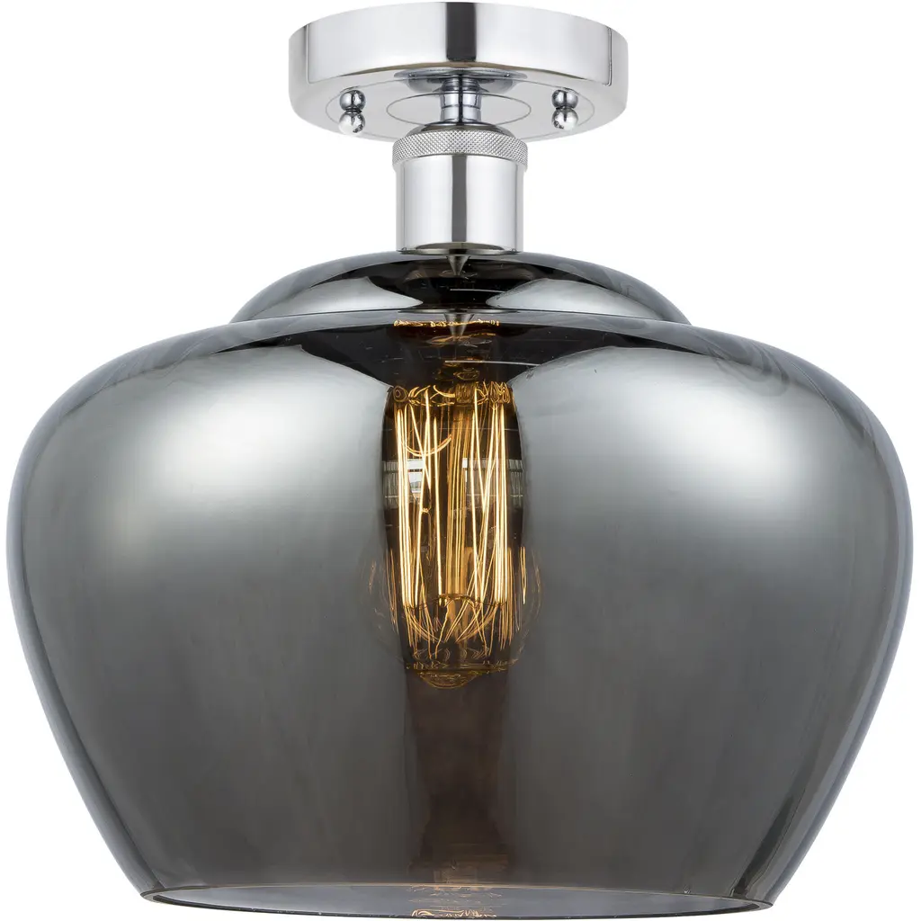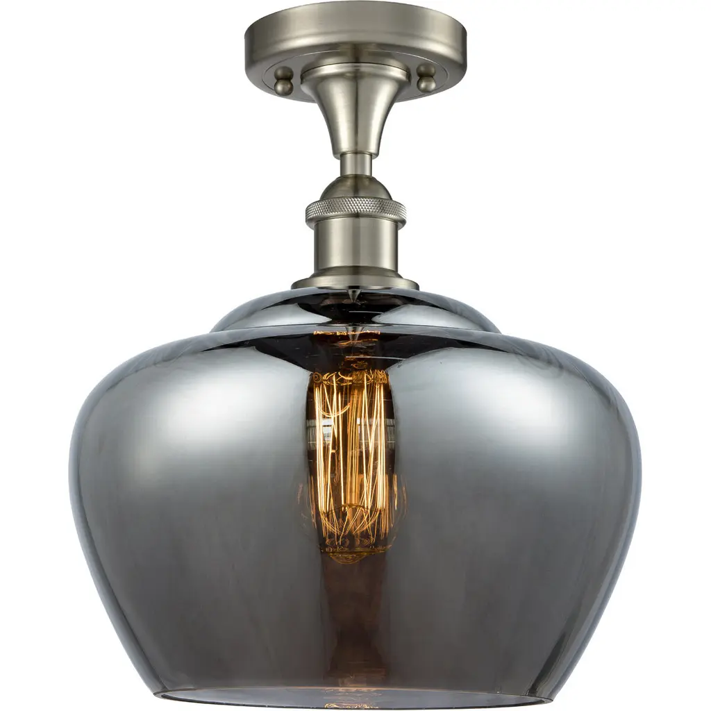 Ballston Large Fenton 1 Light 11 Inch Polished Chrome Semi-Flush Mount Ceiling Light In Plated Smoke Glass, Ballston