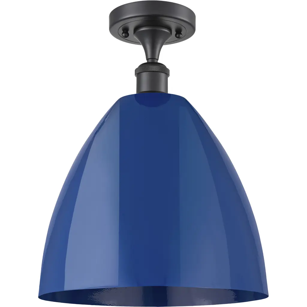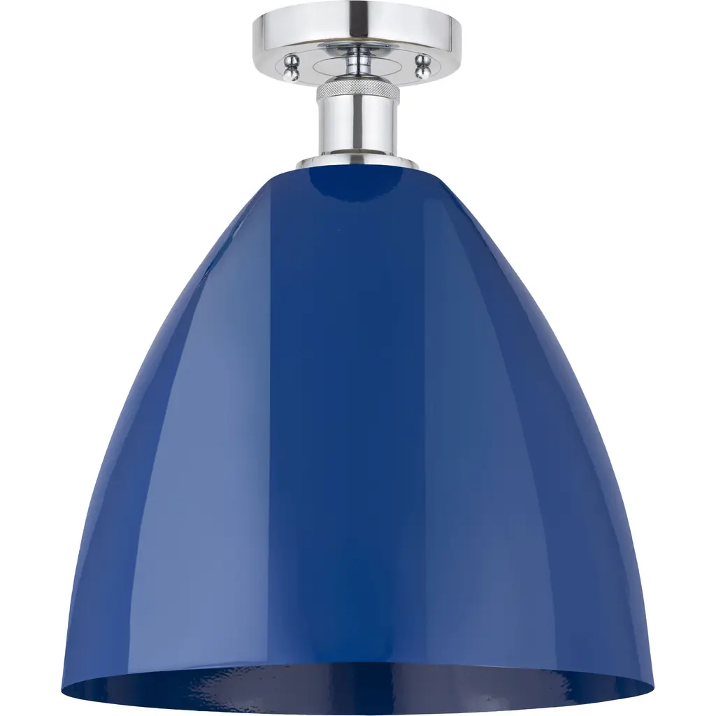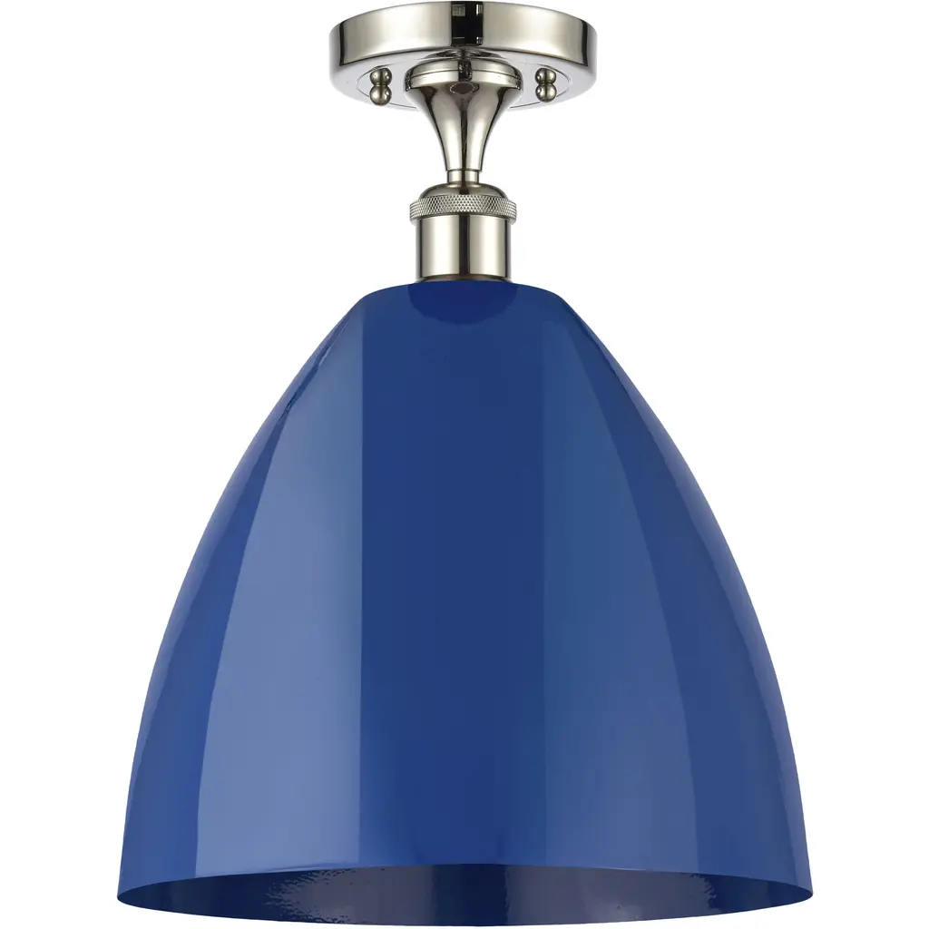 Ballston Plymouth Dome 1 Light 9 Inch White And Polished Chrome Semi-Flush Mount Ceiling Light In Matte Blue