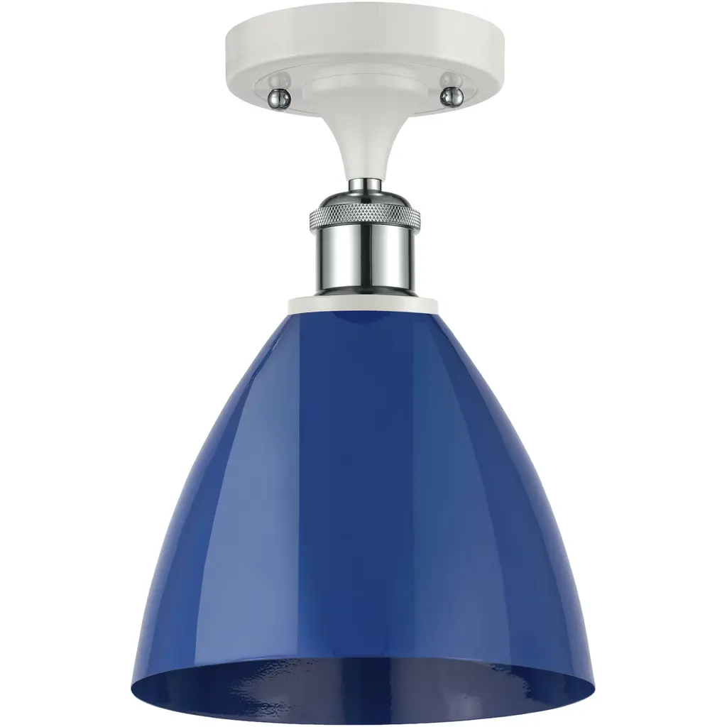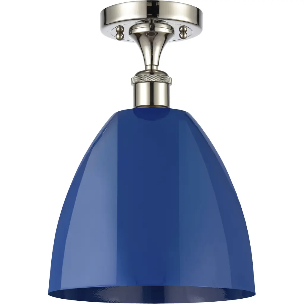 Ballston Plymouth Dome Led 7.5 Inch Polished Chrome Semi-Flush Mount Ceiling Light In Matte Blue