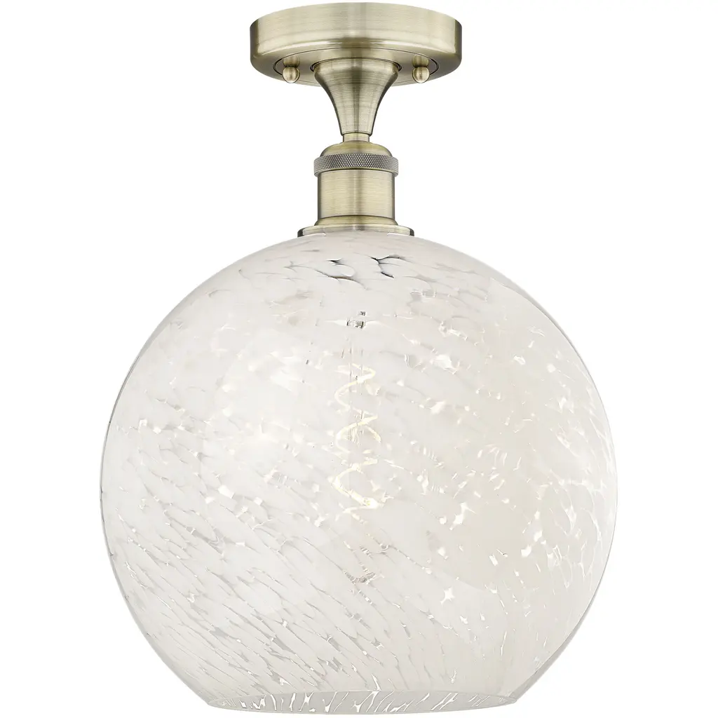 Ballston White Mouchette 1 Light 12 Inch Brushed Brass Semi-Flush Mount Ceiling Light