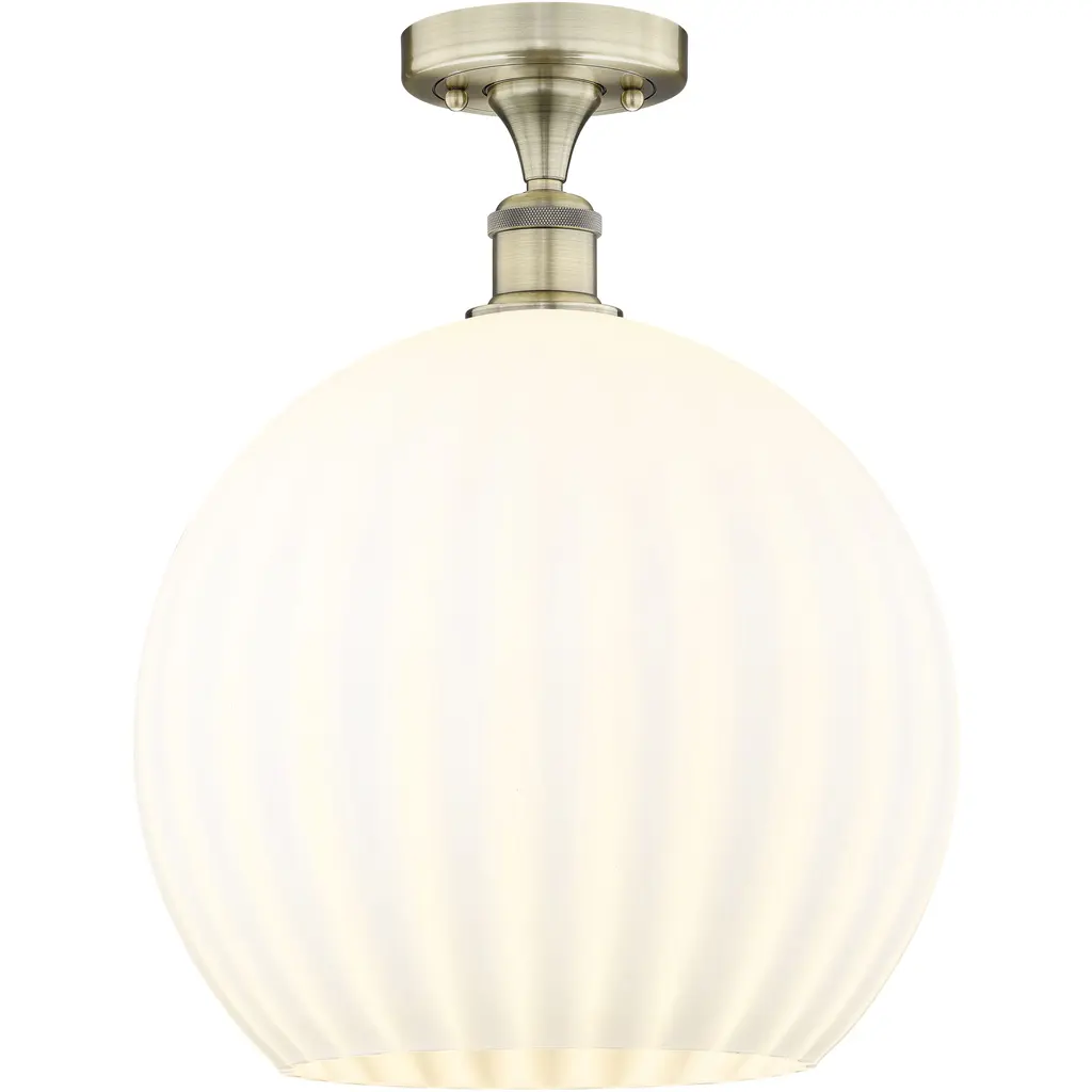 Ballston White Venetian 1 Light 12 Inch Brushed Brass Semi-Flush Mount Ceiling Light