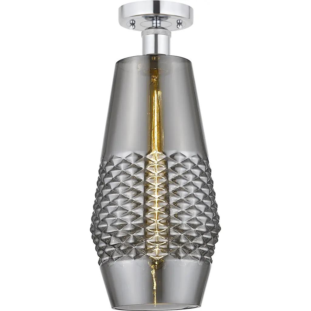 Ballston Windham Led 7 Inch Matte Black Semi-Flush Mount Ceiling Light In Plated Smoke Glass