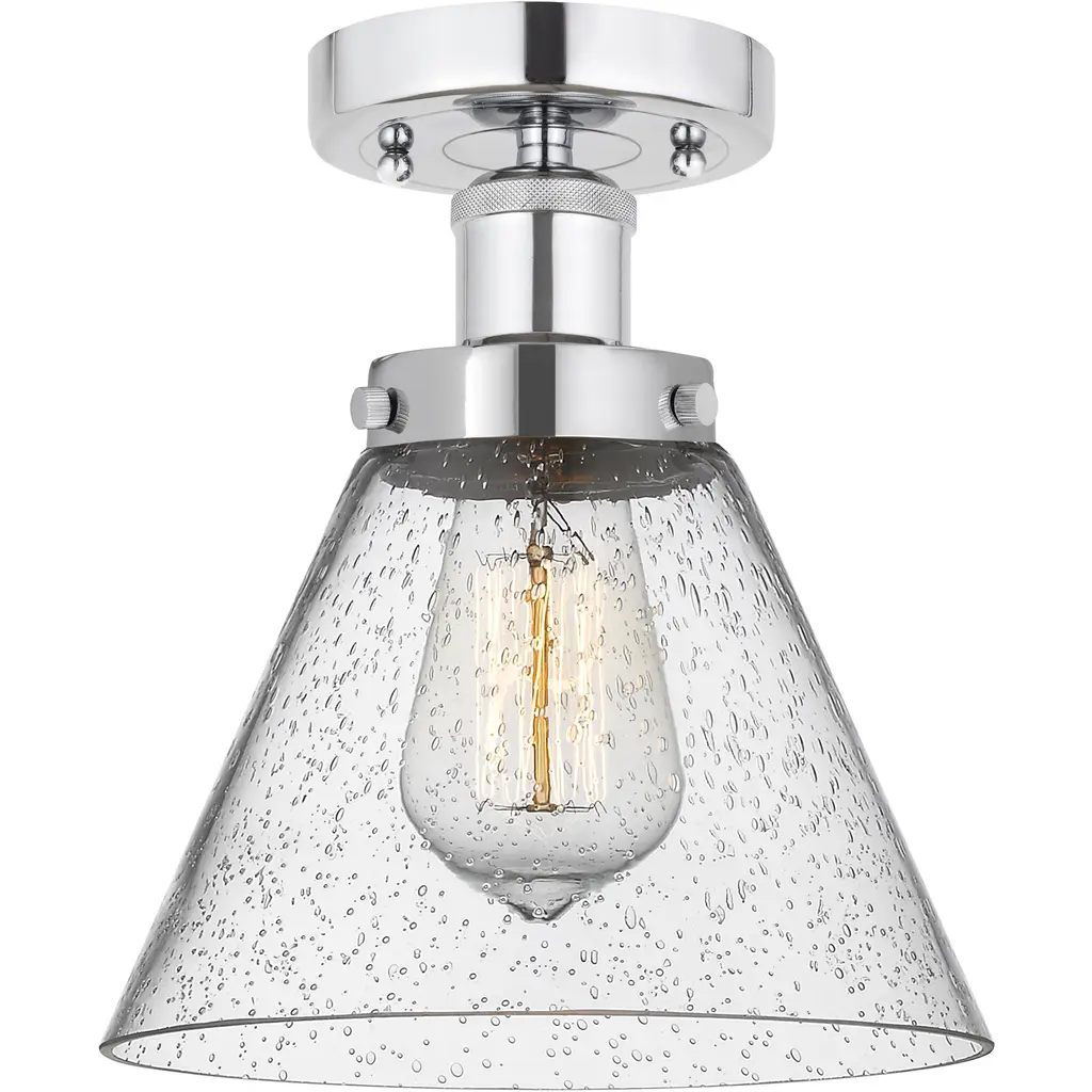 Ballston X-Large Bell 1 Light 8 Inch White And Polished Chrome Semi-Flush Mount Ceiling Light In Seedy Glass