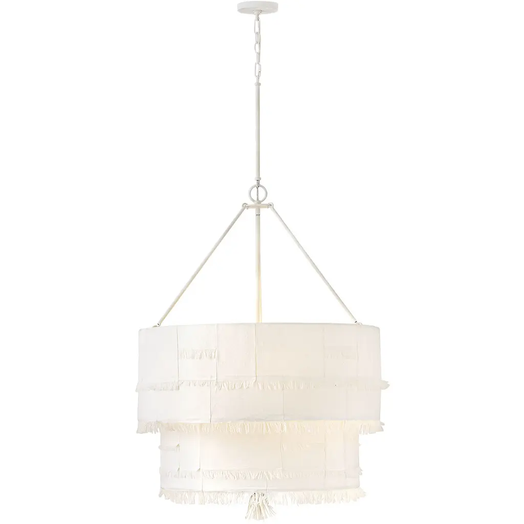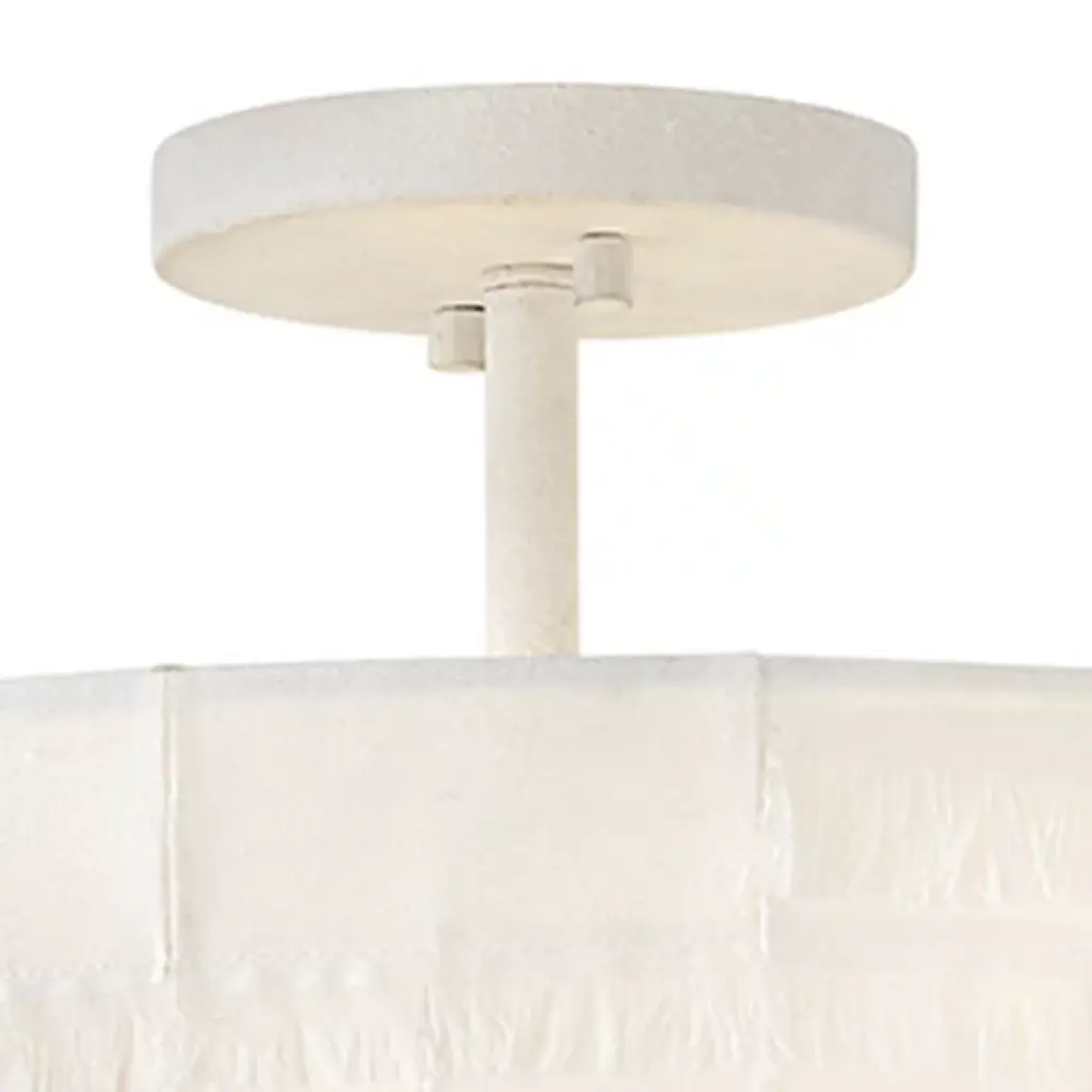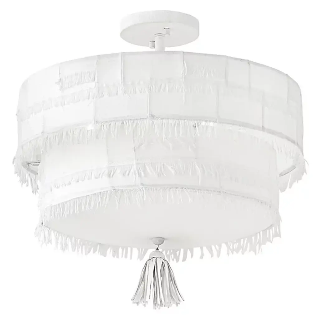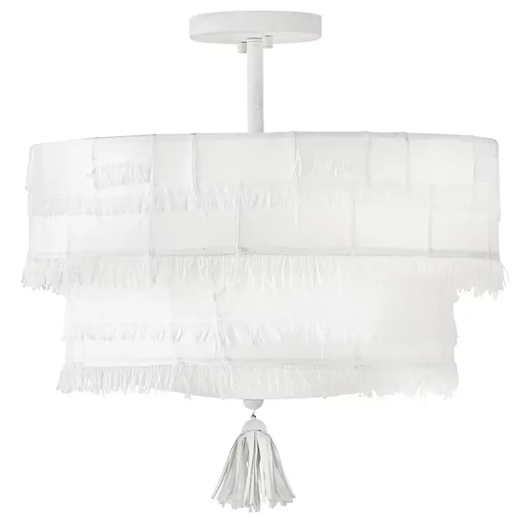 The Baya Semi-Flushmount from Hinkley brings artisanal craft to ceiling lighting through its carefully constructed fabric shade. Multiple tiers of hand-sewn patchwork create subtle dimension and texture. A leather tassel adds an unexpected finishing touch to this design inspired by current distressed fashion trends. The light filters gently through the layered material, while dimmable capabilities let you adjust the output. This fixture proves that thoughtful details can transform everyday materials into something extraordinary.