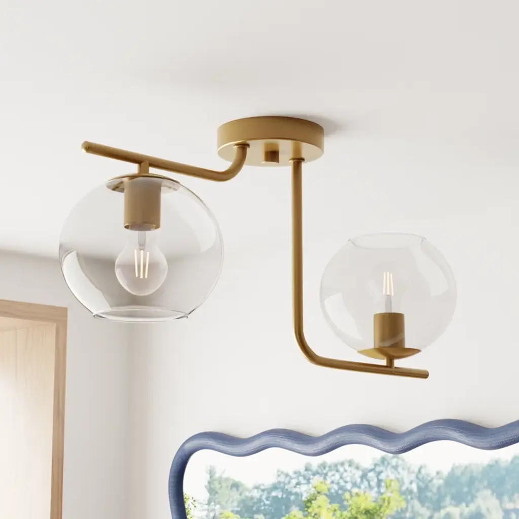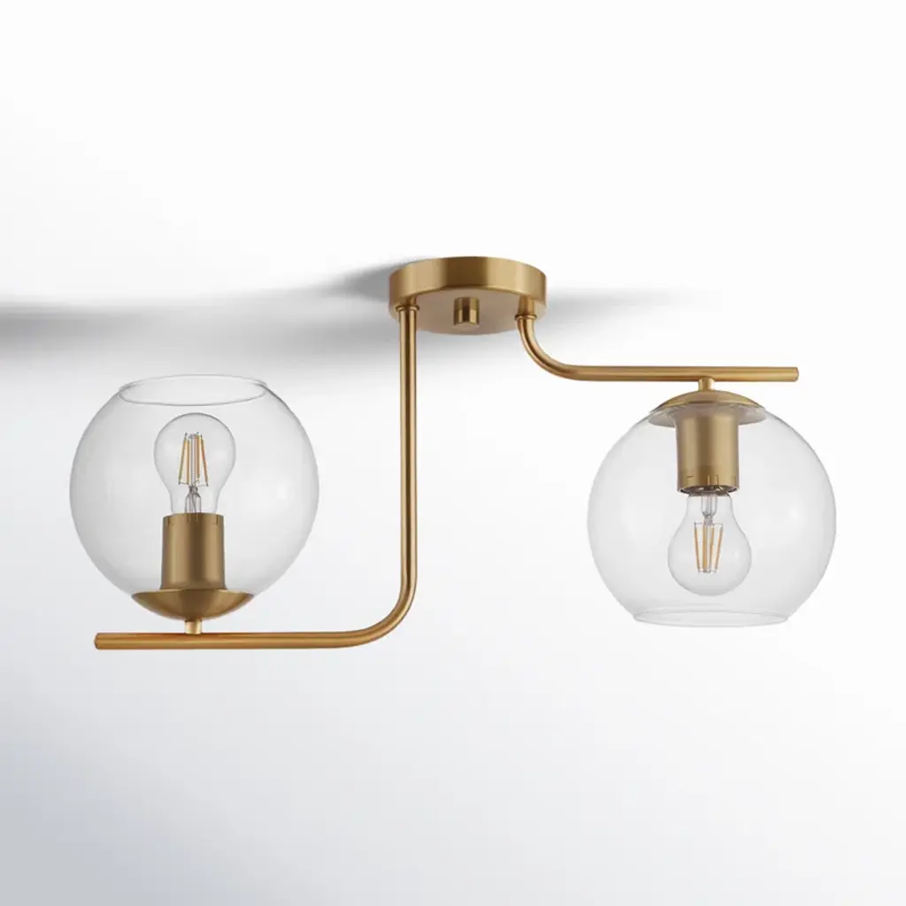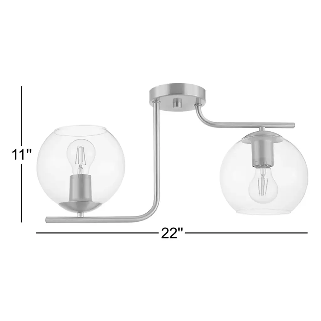 Make a statement in your space with this bold, 2-light semi-flush mount fixture that draws on industrial and mid-century designs. Crafted from metal, it features a circular backplate with two right-angled arms that sit at different heights for visual dimension. Glass globe shades are attached to each arm that helps diffuse the light of the 40W bulbs (sold separately). This fixture is rated for damp spaces, and is compatible with dimmer switches.