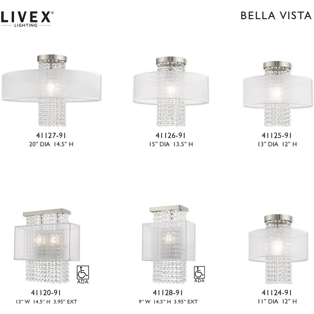 Bella Vista 1 Light 13 Inch Brushed Nickel Semi-Flush Mount Ceiling Light