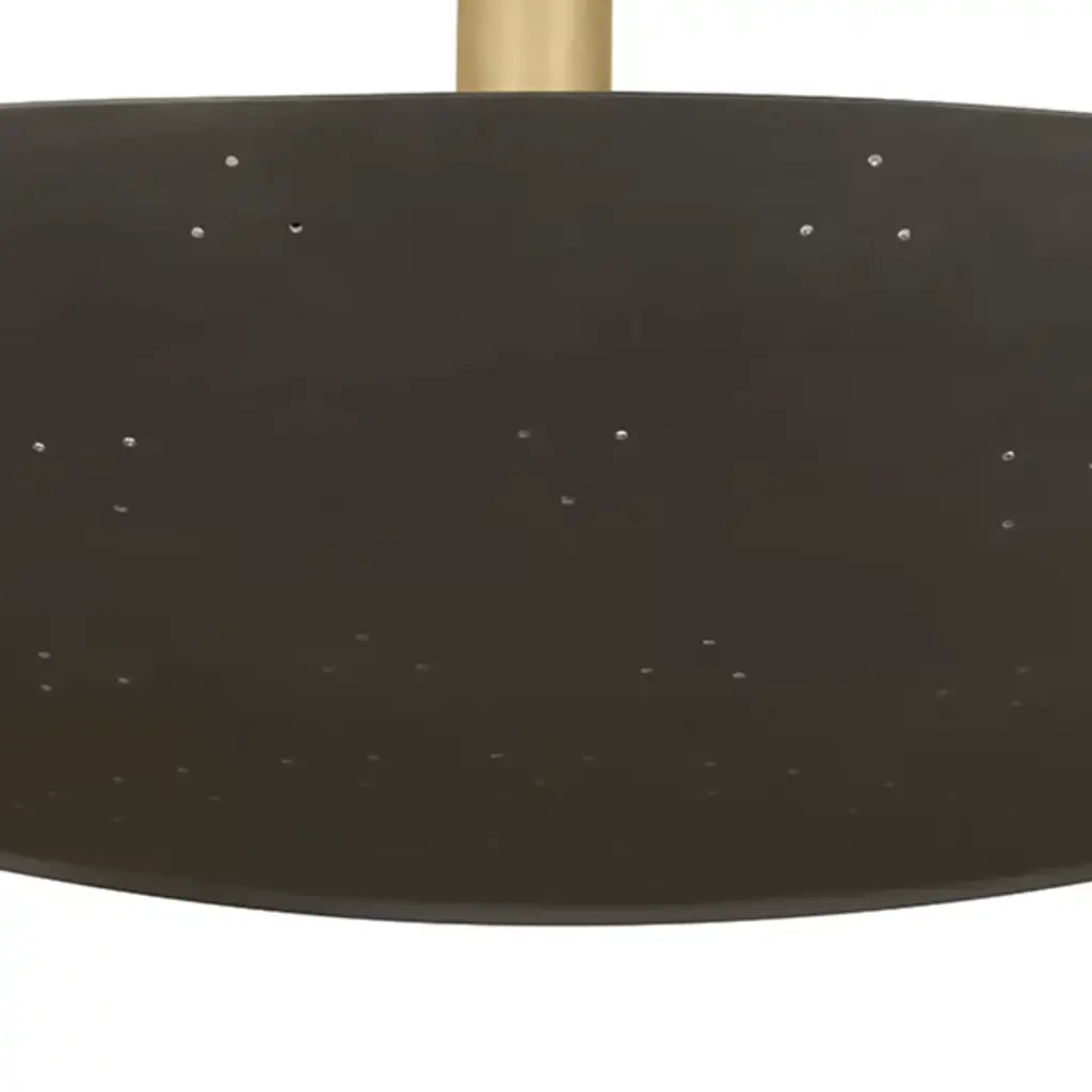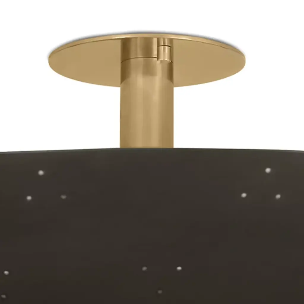 The Bern Semi-Flushmount from Hudson Valley Lighting brings futuristic design sensibilities to ceiling lighting through its pronounced disc shape. Perforations across the metal shade create a starry pattern when illuminated, and the fixture's low profile works particularly well in spaces where traditional pendants might feel overwhelming. Brass construction gives the piece substantial weight and quality that immediately registers in person. This design manages to be both understated and distinctive—its perforated details only reveal themselves when the light switches on, creating a subtle surprise element in your room.