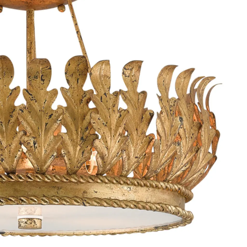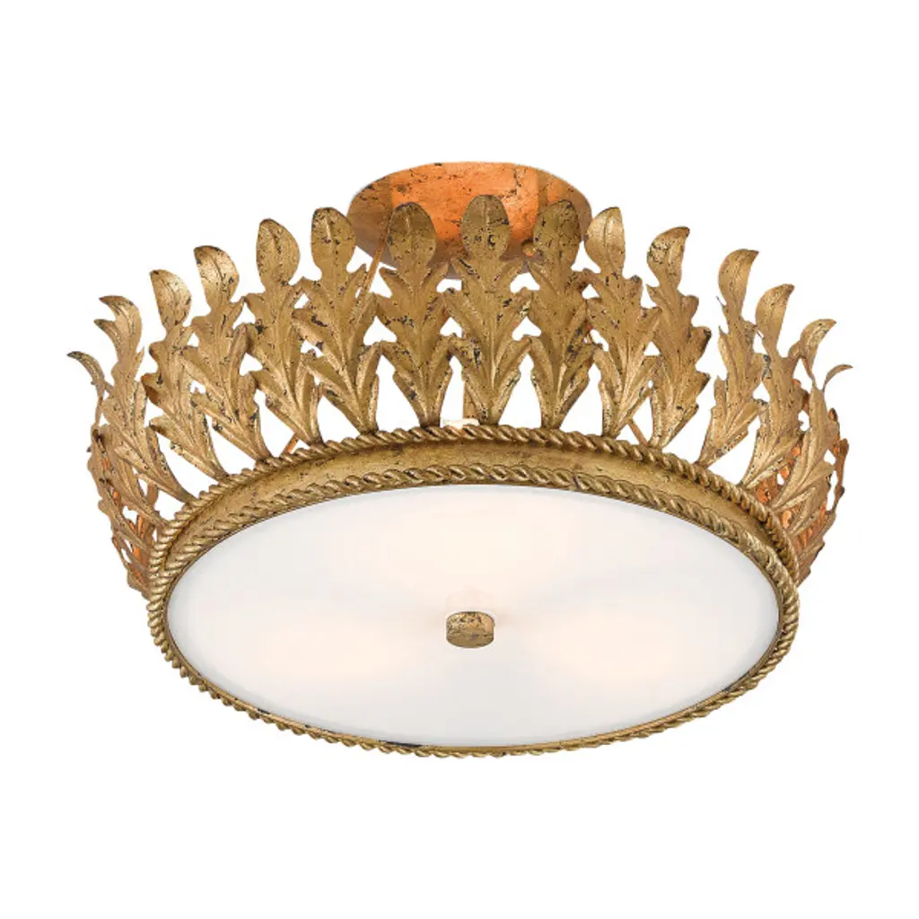 The acanthus leaves rising up from the rope-ringed band of the Biddulph Semi-Flush are made of wrought iron. These match the mount securing this ceiling light to the white acrylic shade. This light is one of our introductions in the Bunny Williams Collection.