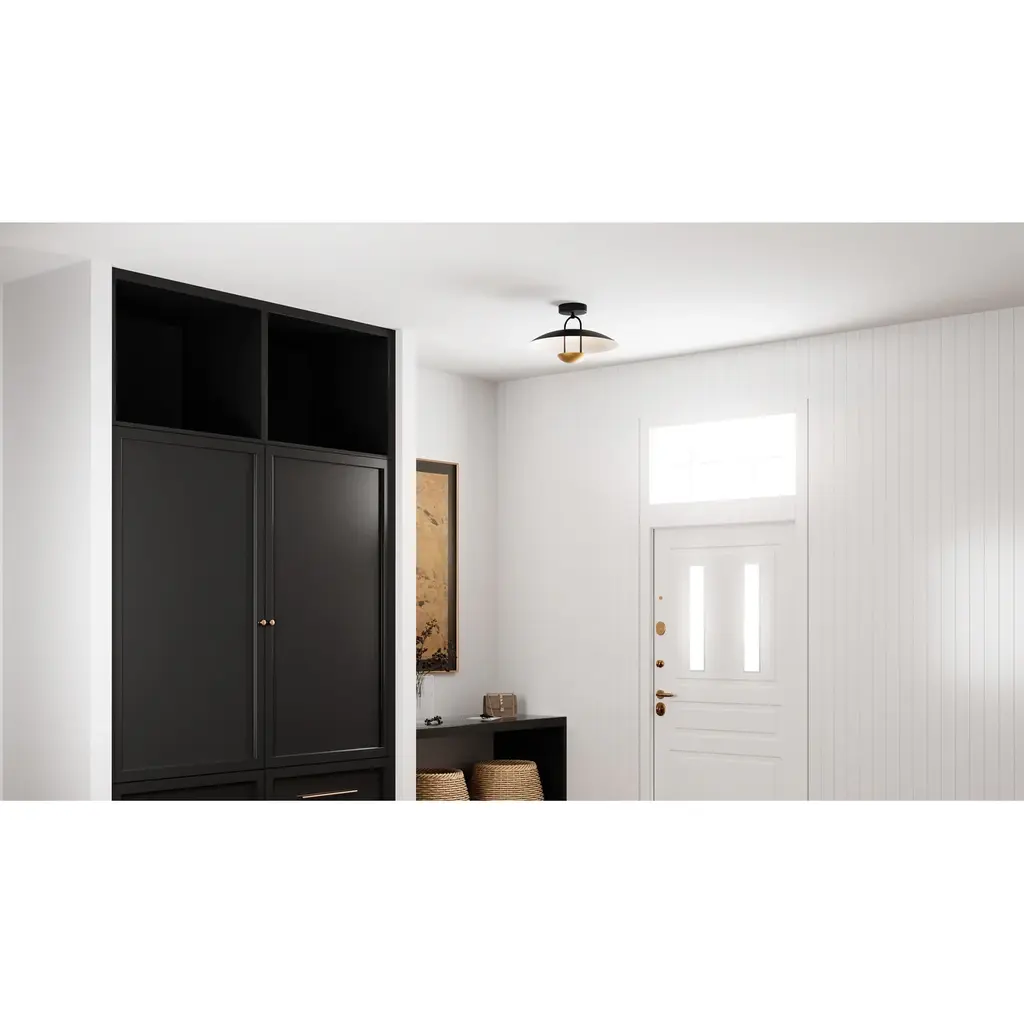 Bingham embodies a perfect blend of modern style and classic elegance. Choose between a brushed gold finish with a matte white shade or a matte black finish with gold accents to suit various interior styles. The interior of the metal shade is painted white for an optimal lighting effect, providing ample illumination while adding a touch of style. Bingham is available as a semi-flush mount or pendant light.