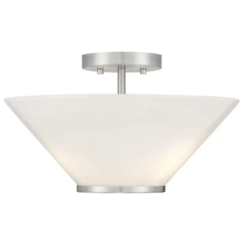 The Blair Semi-Flushmount / Pendant from Savoy House solves the common problem of choosing between hanging and flush fixtures. Its dual-mount design installs either way, adapting to your space without compromise, and its textured glass diffuses light naturally, preventing harsh glare while providing ample illumination for dining tables, kitchen islands, or entryways. This luminaire’s adjustable height responds to your changing needs, and its three light sources create balanced brightness for everyday tasks. Its dimmable feature lets you adjust from practical to relaxing atmospheres with a simple switch adjustment.