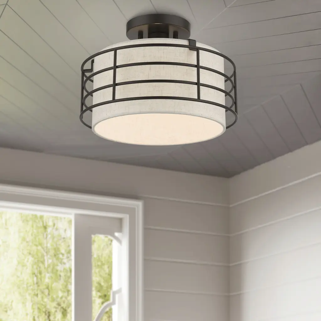 Blanchard 1 Light 12 Inch English Bronze Semi Flush Mount Ceiling Light, Medium