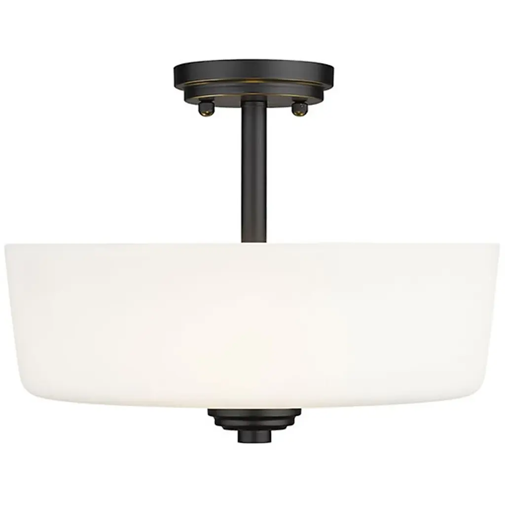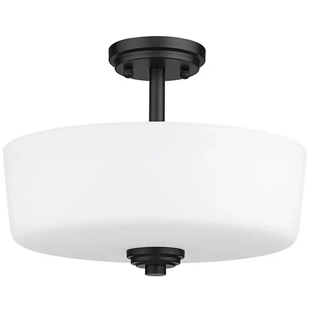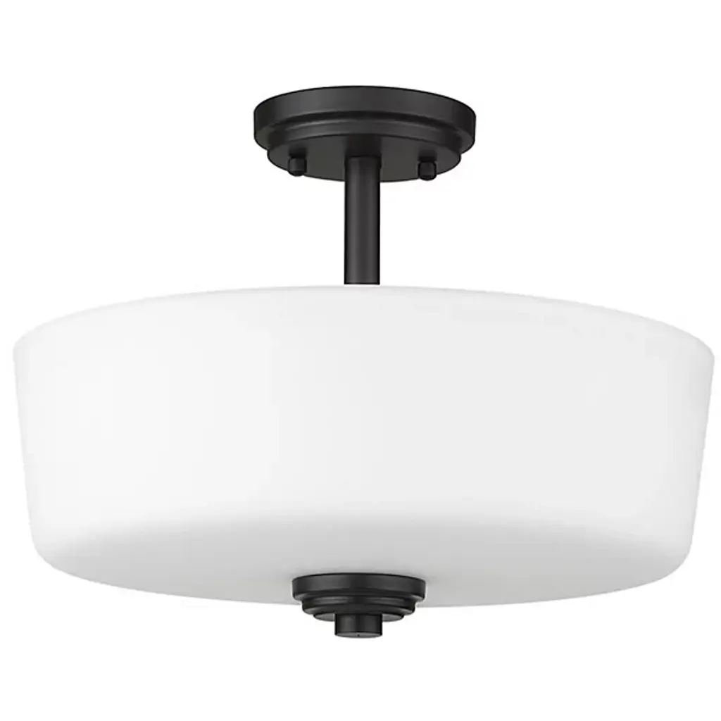 Illuminate your space with transitional flair using the Boughton Semi Flushmount from Alder & Ore. Defined by a drum-shaped opal glass shade, this lighting fixture is secured by a round, steel canopy mounted flush to the ceiling. The opal glass diffuses the inner LED light for a soft, ambient glow. The traditional drum silhouette complements a wide range of decor styles. A separately sold ELV dimmer lets you easily adjust the brightness level.