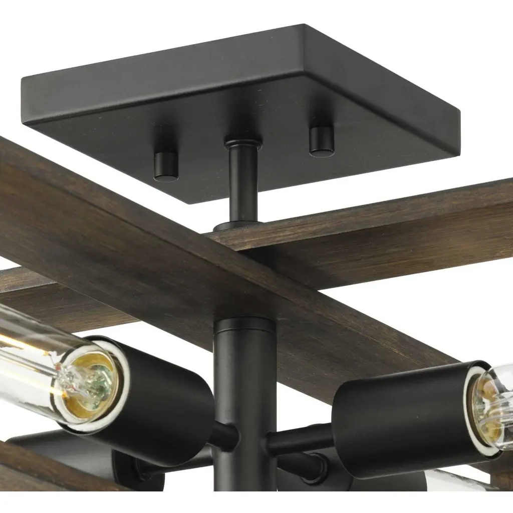 Simple rectangles form the building blocks of the Boundary Flush Mount Light. The fixture's modern organic design is crafted from natural wood and offers warmth and timeless style to contemporary settings.Two rectangles intersect to form an open frame showcasing light sources that deliver clear illumination to the surrounding space. This light is part of the Progress Lighting Design Series, a lighting collection offering fashionable styles and affordable luxury lighting for the home.