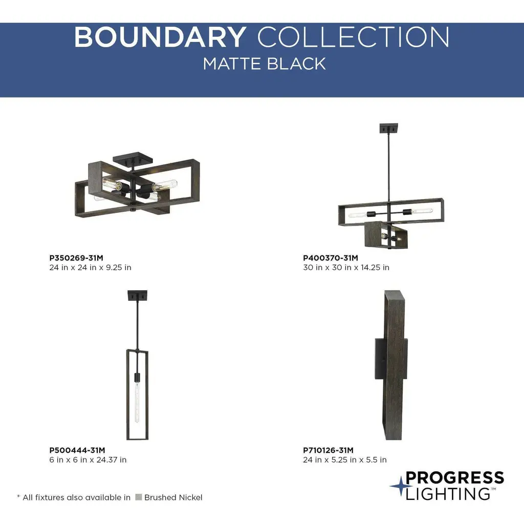 Simple rectangles form the building blocks of the Boundary Flush Mount Light. The fixture's modern organic design is crafted from natural wood and offers warmth and timeless style to contemporary settings.Two rectangles intersect to form an open frame showcasing light sources that deliver clear illumination to the surrounding space. This light is part of the Progress Lighting Design Series, a lighting collection offering fashionable styles and affordable luxury lighting for the home.