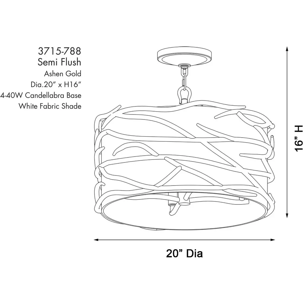 Branch Reality 4 Light 20 Inch Textured Ashen Gold Semi Flush Mount Ceiling Light