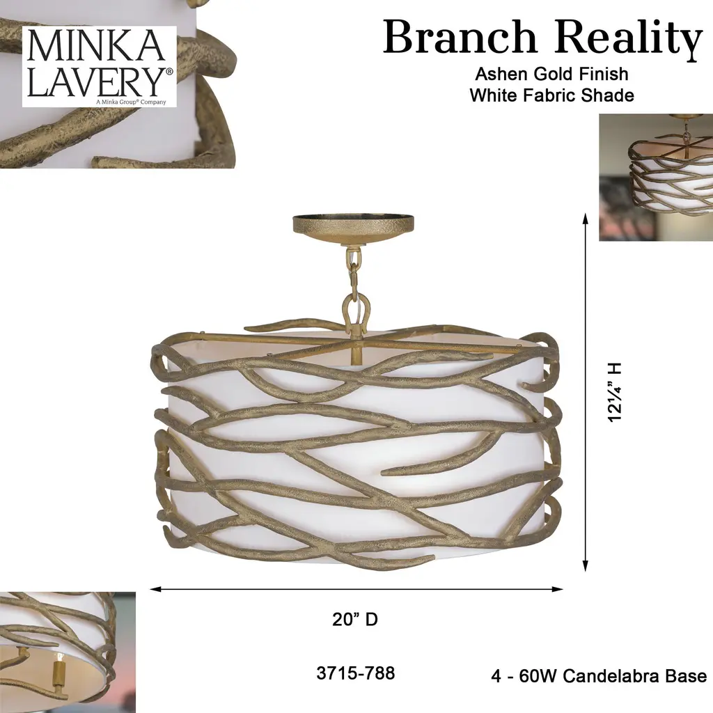 This 4 light Semi Flush Mount from the Branch Reality collection by Minka-Lavery will enhance your home with a perfect mix of form and function. The features include a Textured Ashen Gold finish applied by experts. This item qualifies for free shipping!