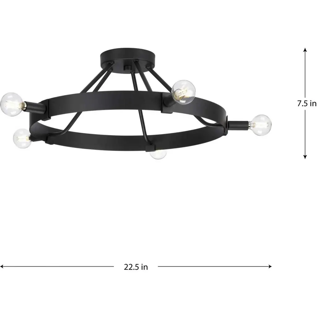 Breckenridge 5 Light 22.5 Inch Matte Black Semi-Flush Mount Ceiling Light, Design Series
