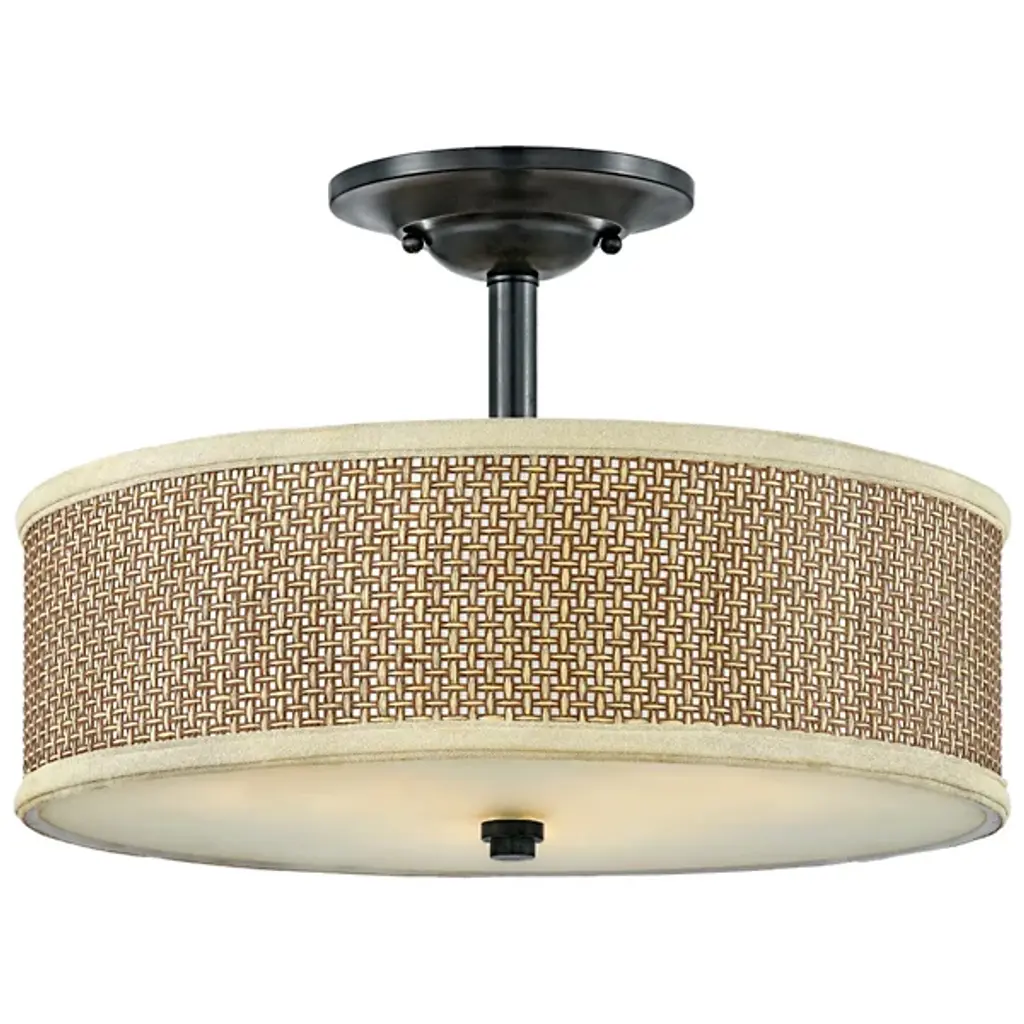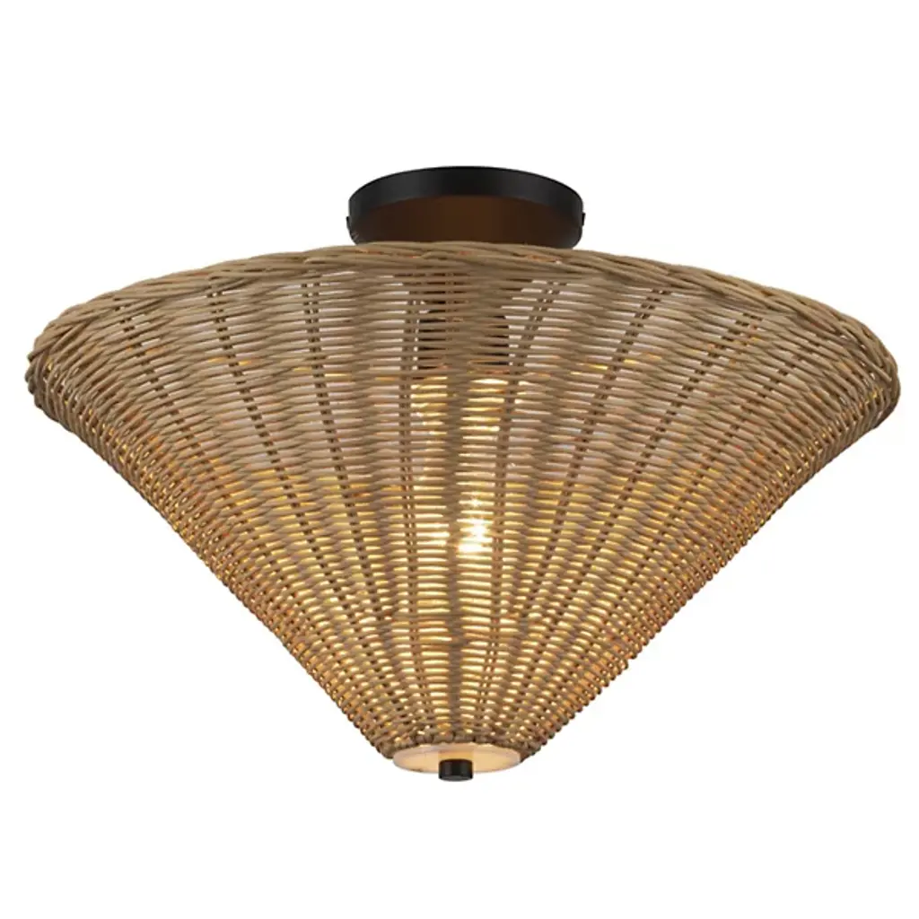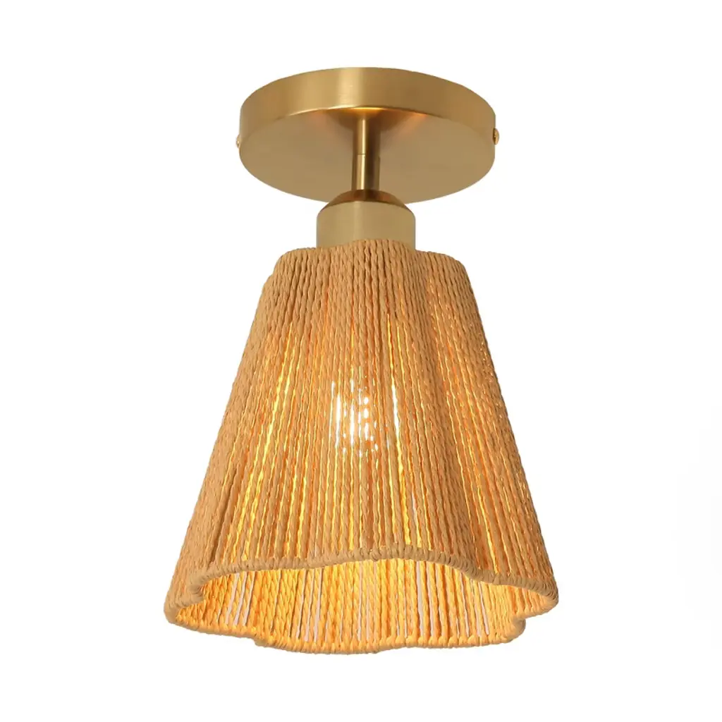 The Bridgette Rattan Semi-Flushmount from Alora Mood brings natural texture and relaxed charm to overhead lighting. Designed by Peyton Fox, this transitional design features a compact steel structure paired with a flared rattan shade that surrounds the light source. The woven material diffuses a gentle glow while casting soft reflections on the stem above, adding depth and warmth to the space. Perfect for dining areas, kitchens, or cozy corners, the design pairs casual style with a simple, thoughtfully composed form.