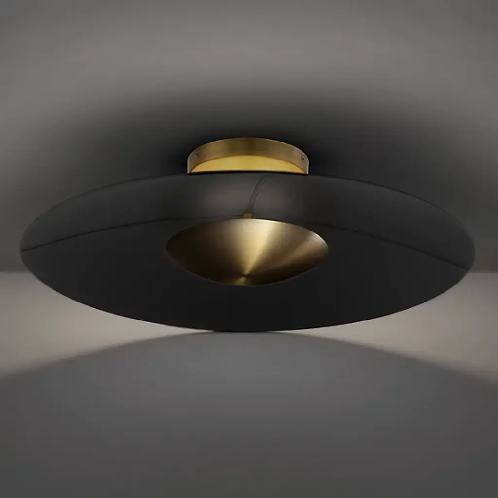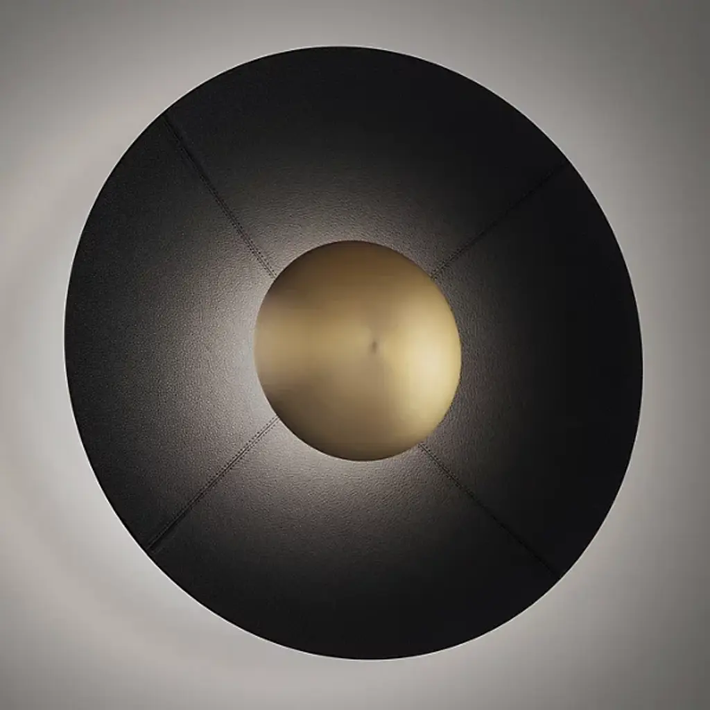 The Brody LED Semi-Flushmount from Modern Forms features a topstitched black disc suspended from a luminous circular frame, offering ambient light from its concealed LED source. Crafted with precision, its spun metal frame and faux leather shade exude sophistication, accented with alabaster for a chic and distinguished aesthetic. Suitable for damp locations, Brody seamlessly transitions between indoor and covered outdoor spaces, and it is mountable on ceilings or walls in any orientation.