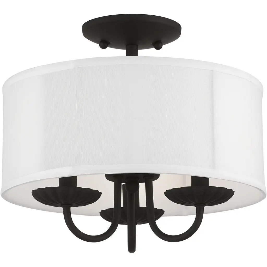 Brookdale 3 Light 13 Inch Black Semi-Flush Mount Ceiling Light