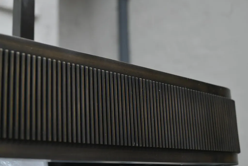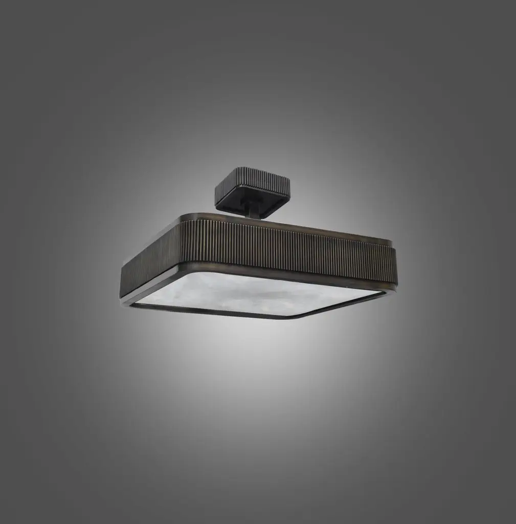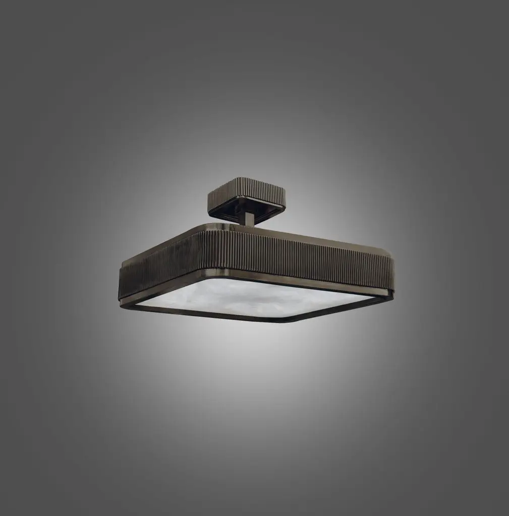 Elegant form fixture with antique brass frame and rock crystal panel, BSO rock crystal semi flush mount created by Phoenix, NYC.Height can be adjustable.Metal finish upon request.Lutron dimmer system. Each fixture installs four E26 base sockets. Use four 60W each LED light bulb. (240W total)