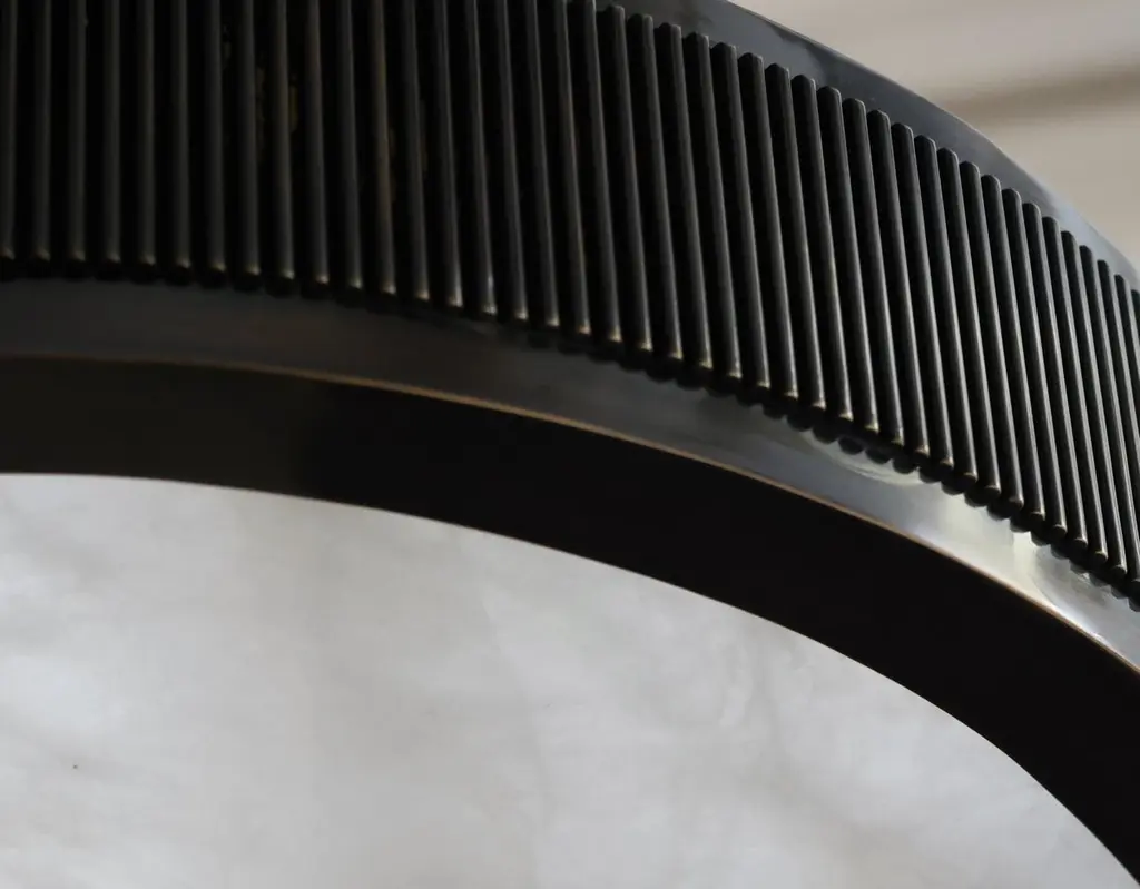 Rock crystal semi flush mount with antique brass frame. Created by Phoenix Gallery, NYC.Height can be adjustable.The height of the brass frame is 4".