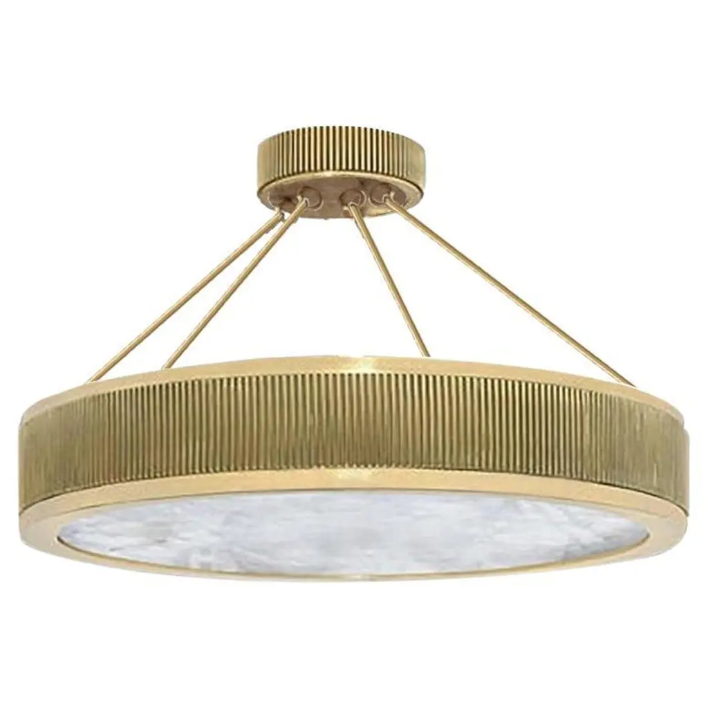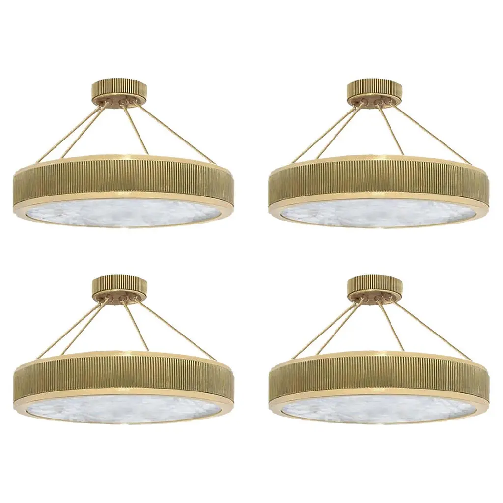 Group of two rock crystal semi flush mount with polished brass frame. Created by Phoenix Gallery, NYC.Height can be adjustable.The height of the brass frame is 4".Lutron dimmer system. Each fixture installs four E26 base sockets. Use four 60W each LED light bulb. (240W total).