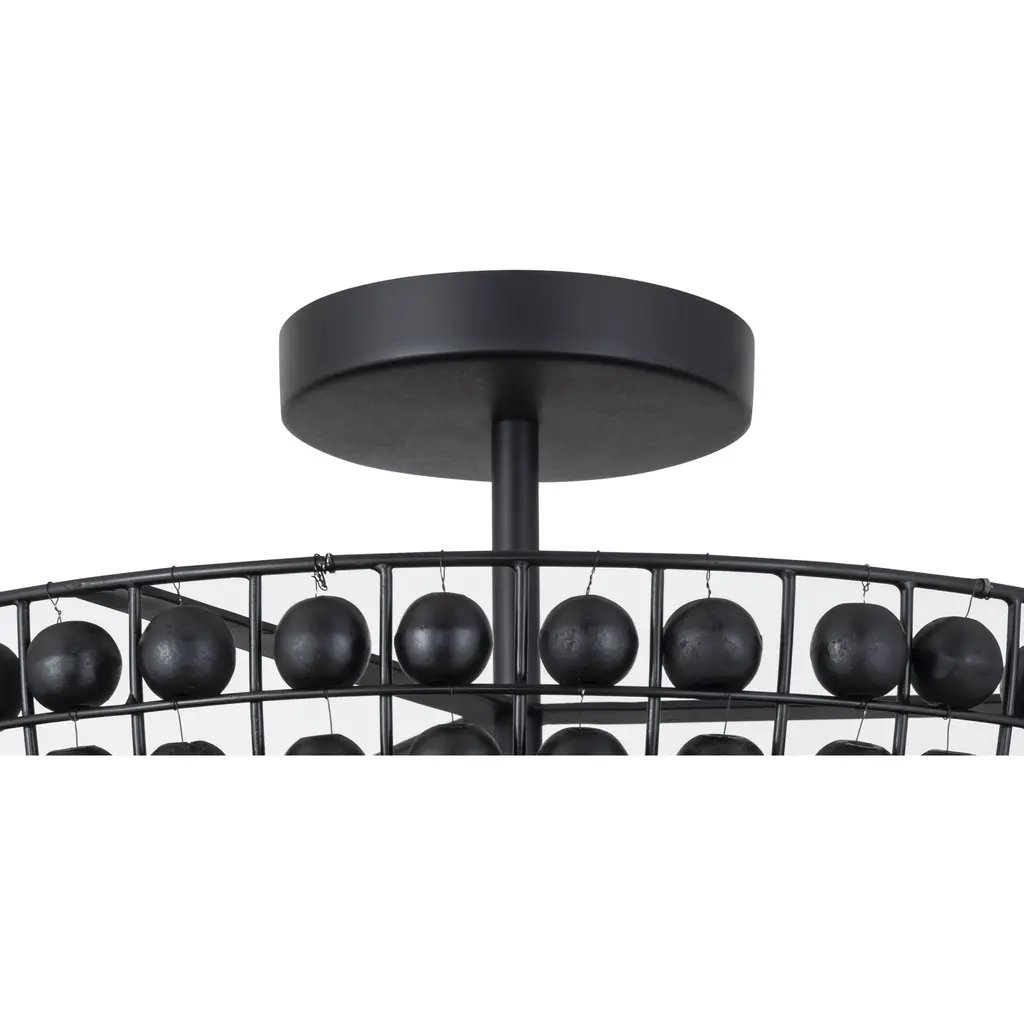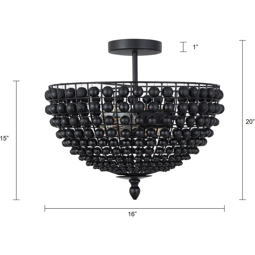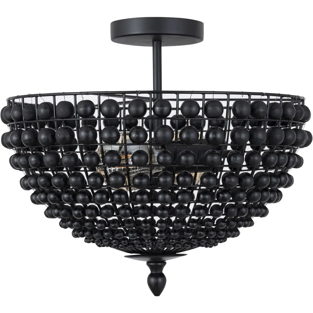 This black semi-flush light fixture combines a modern finish with decorative wooden bead details, creating a unique and stylish focal point. With a compact 16-inch width and two-light design, it offers functional and decorative lighting for smaller spaces. Compatible with 25W E26 bulbs, it delivers soft, ambient light while enhancing the aesthetic of any room.