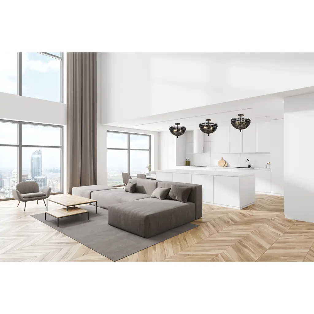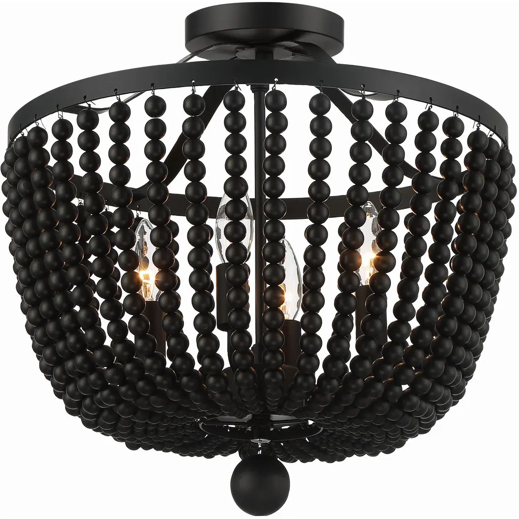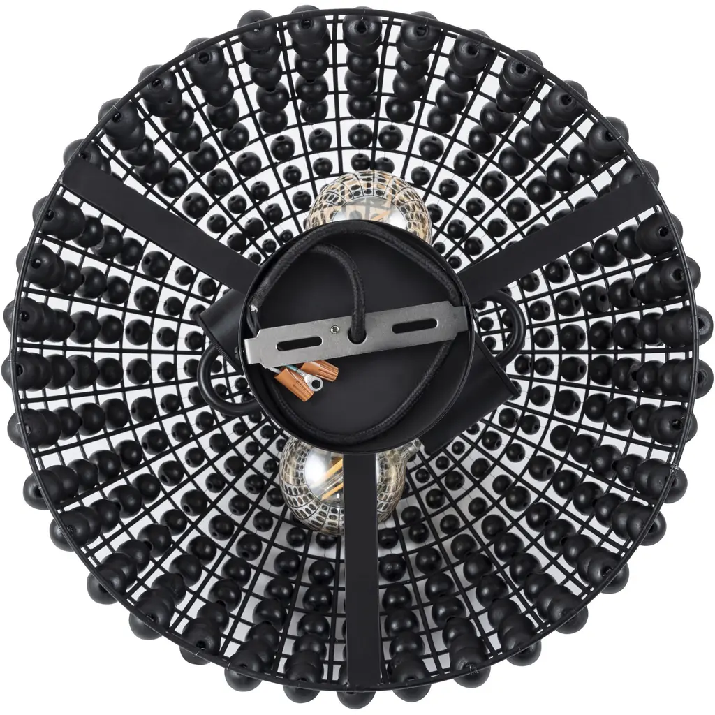 This black semi-flush light fixture combines a modern finish with decorative wooden bead details, creating a unique and stylish focal point. With a compact 16-inch width and two-light design, it offers functional and decorative lighting for smaller spaces. Compatible with 25W E26 bulbs, it delivers soft, ambient light while enhancing the aesthetic of any room.