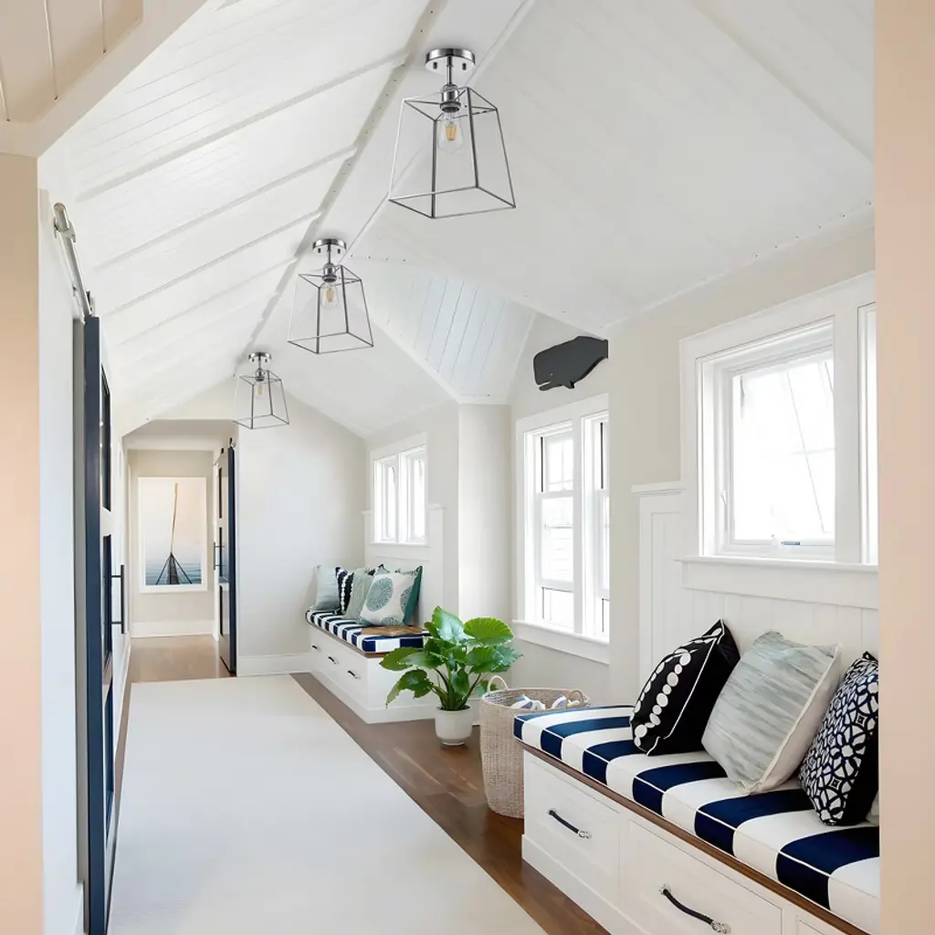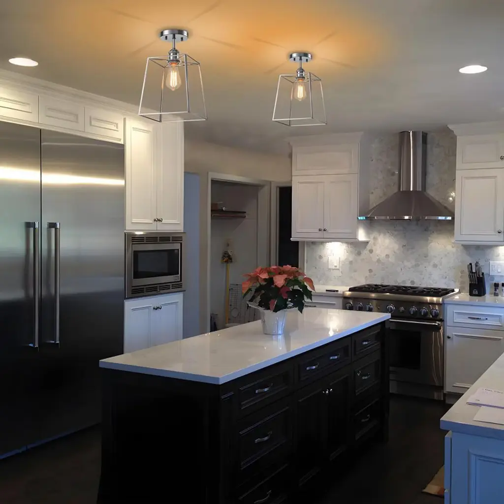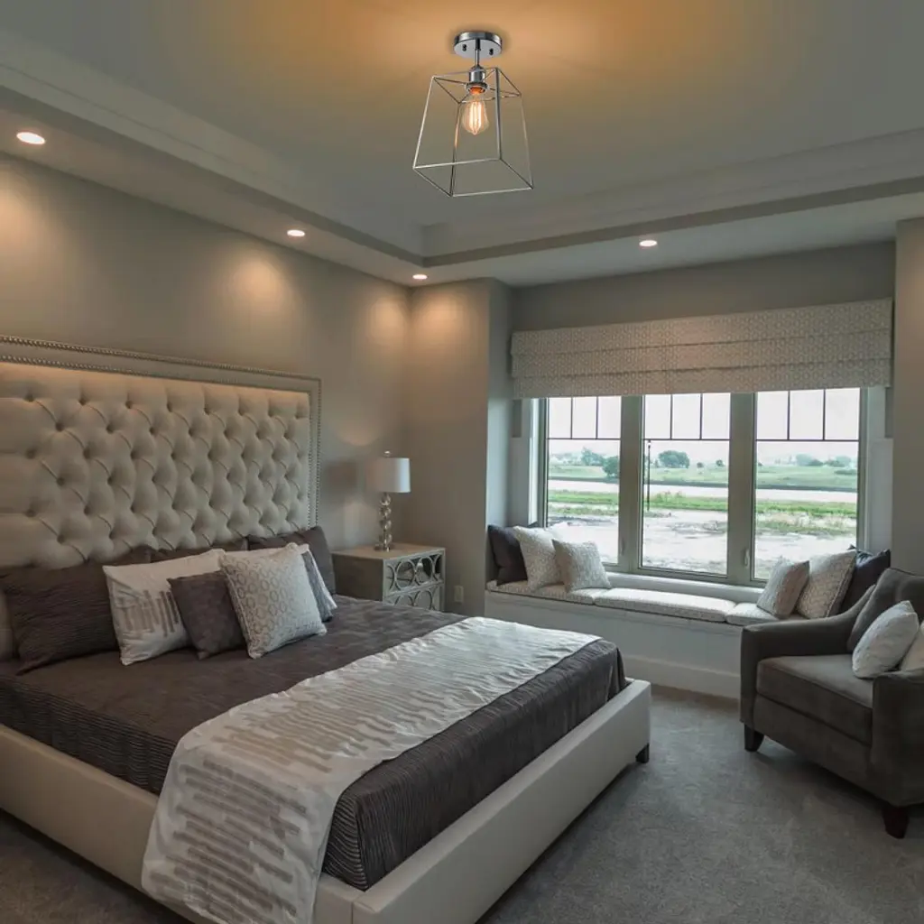 The semi-flush mount ceiling light comes in a trapezoidal shape, delivering an simple and stylish look. It features brass frame in chrome finish with a clear tempered glass shade, presenting a modern minimalist style. The open bottom design dissipates heat quickly and allows for the installation of high power bulbs to provide enhanced illumination.This ceiling light is not only practical but also aesthetically pleasing, making it the ideal choice for both indoor and outdoor spaces.