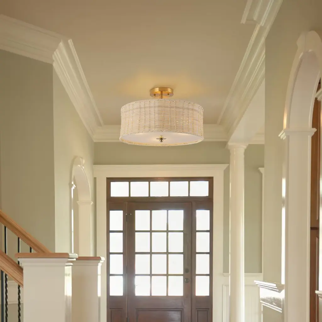 Add warmth and texture to your space with this Semi Flush Mount Light featuring a beautifully hand-woven rattan shade and a luxurious brass finish. Designed to complement boho, farmhouse, and modern home styles, this light fixture brings a soft, ambient glow to any room. The sturdy metal frame ensures durability, while the E26 base accommodates three bulbs for ample illumination. Ideal for living rooms, bedrooms, kitchens, or entryways, this ceiling light is easy to install and instantly enhances your decor.