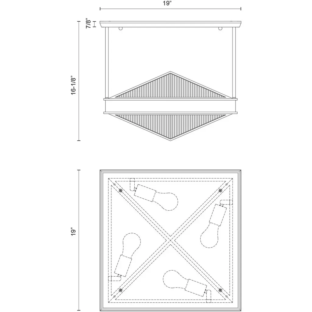 Cairo 4 Light 19 Inch Vintage Brass Semi-Flush Mount Ceiling Light