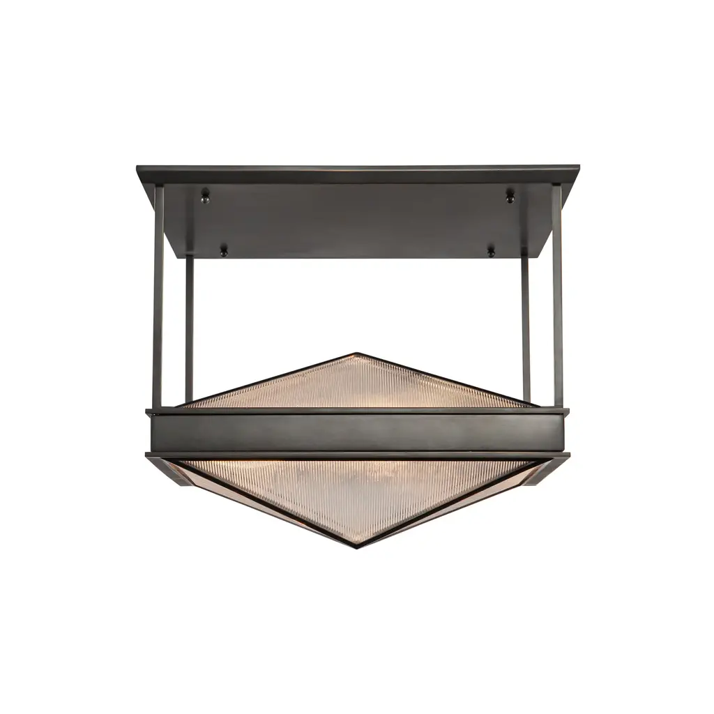Elevate your space with the luxe Cairo Semi Flush Mount from Alora. Inspired by the pyramid at the Louvre, this modern take on ancient forms features ribbed glass and a strong metal frame. Designed by Elisa Carlucci, this semi flush mount makes a statement in a living room, hallway, or even a walk-in closet. Highlights