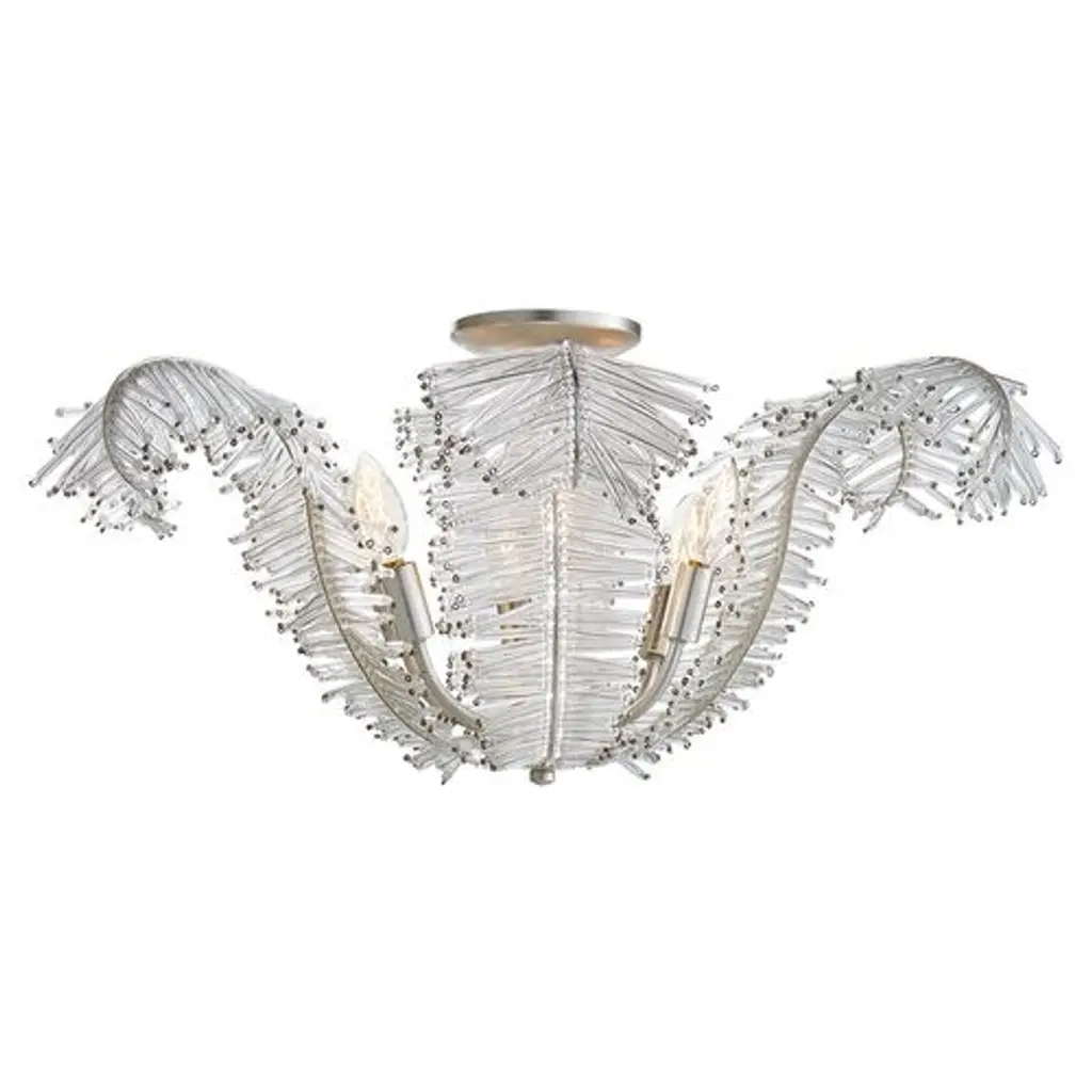 Designed by industry legend Niermann Weeks, this stunning Calais semi-flush mount is sure to make a statement on your ceiling. Delicate glass details, finished in silver leaf make up the leaf like shape, creating the perfect balance of drama and luxury. Hardwired.