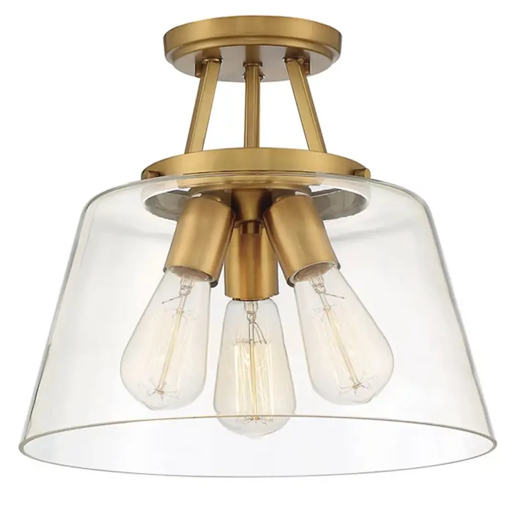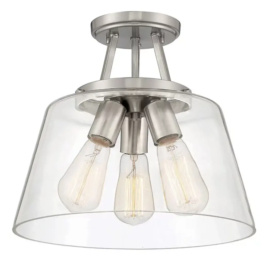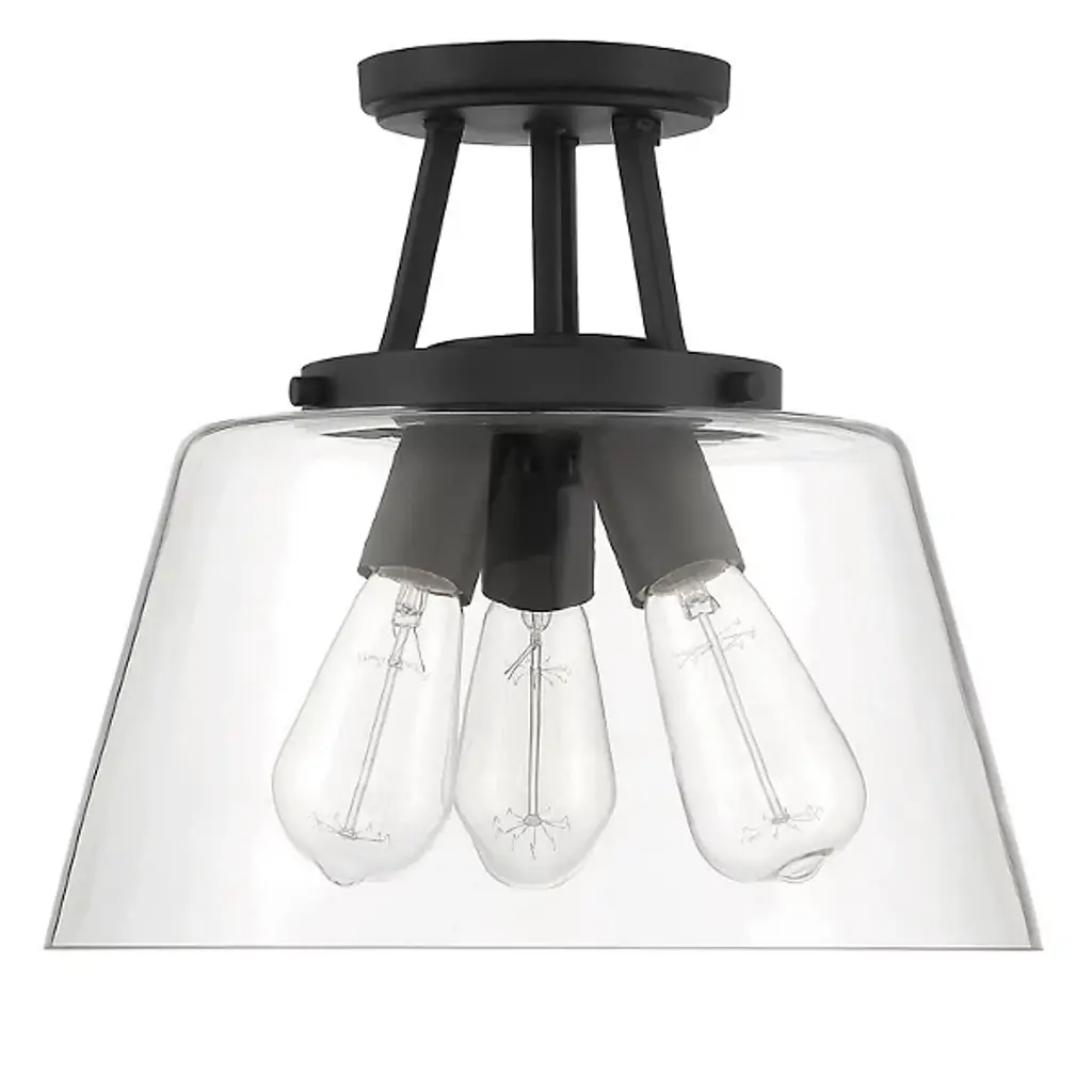 The Calhoun Semi Flushmount by Savoy House has a clean, contemporary look that is at home in a wide range of spaces. Set close to the ceiling, this design is supported by a round canopy and a collection of short, angled stems that hold a clear glass shade. Within this shade, a set of visible bulbs shine, casting an even layer of illumination onto surroundings. The metal elements are completed with a lovely finish, allowing this piece to bring a bright, beautiful touch to rooms.