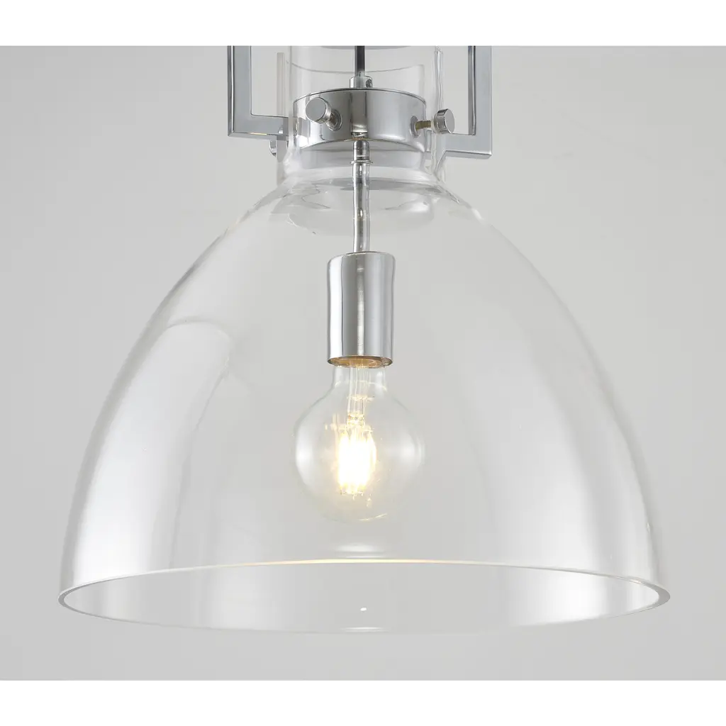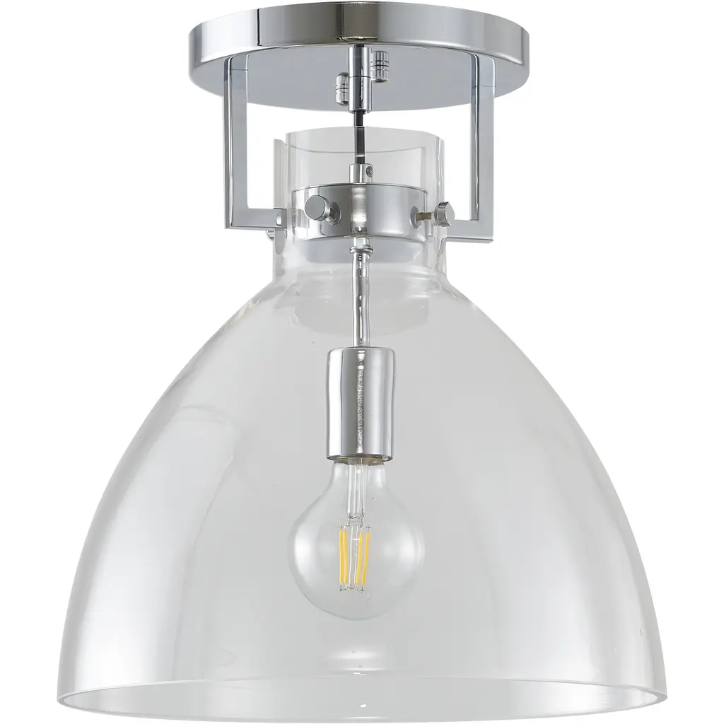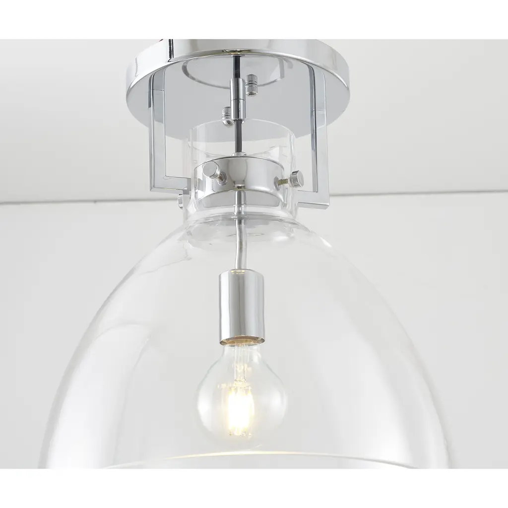 This traditional semi flush mount that adds a touch of sophistication to any room. Measuring 14 inches in diameter and 15 inches high, this pendant is a compact and versatile option that can be hung from a ceiling. The chrome frame provides a warm and rich tone, while the clear glass shade adds a touch of simplicity and elegance. This semi flush mount provides bright and warm light, making it perfect for bedroom, living room, dinning room, entryway, or hallway.