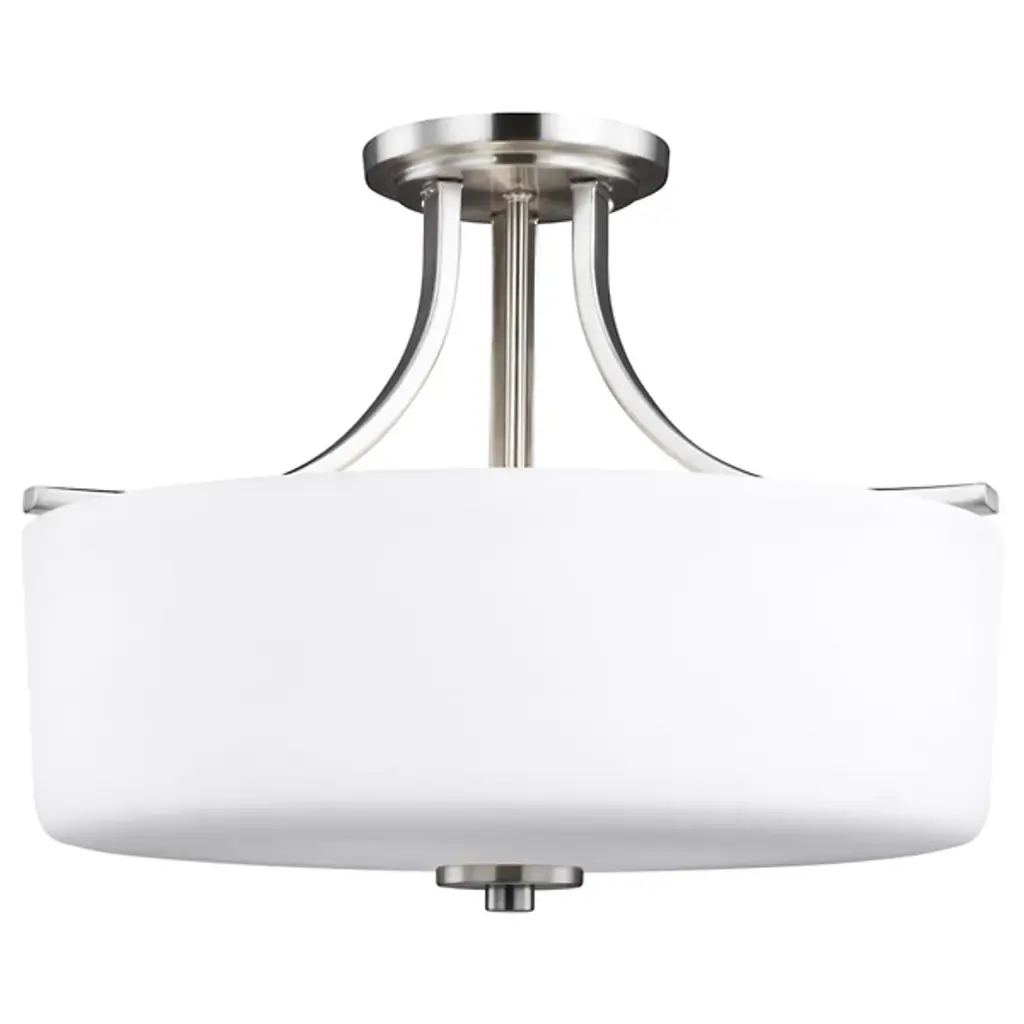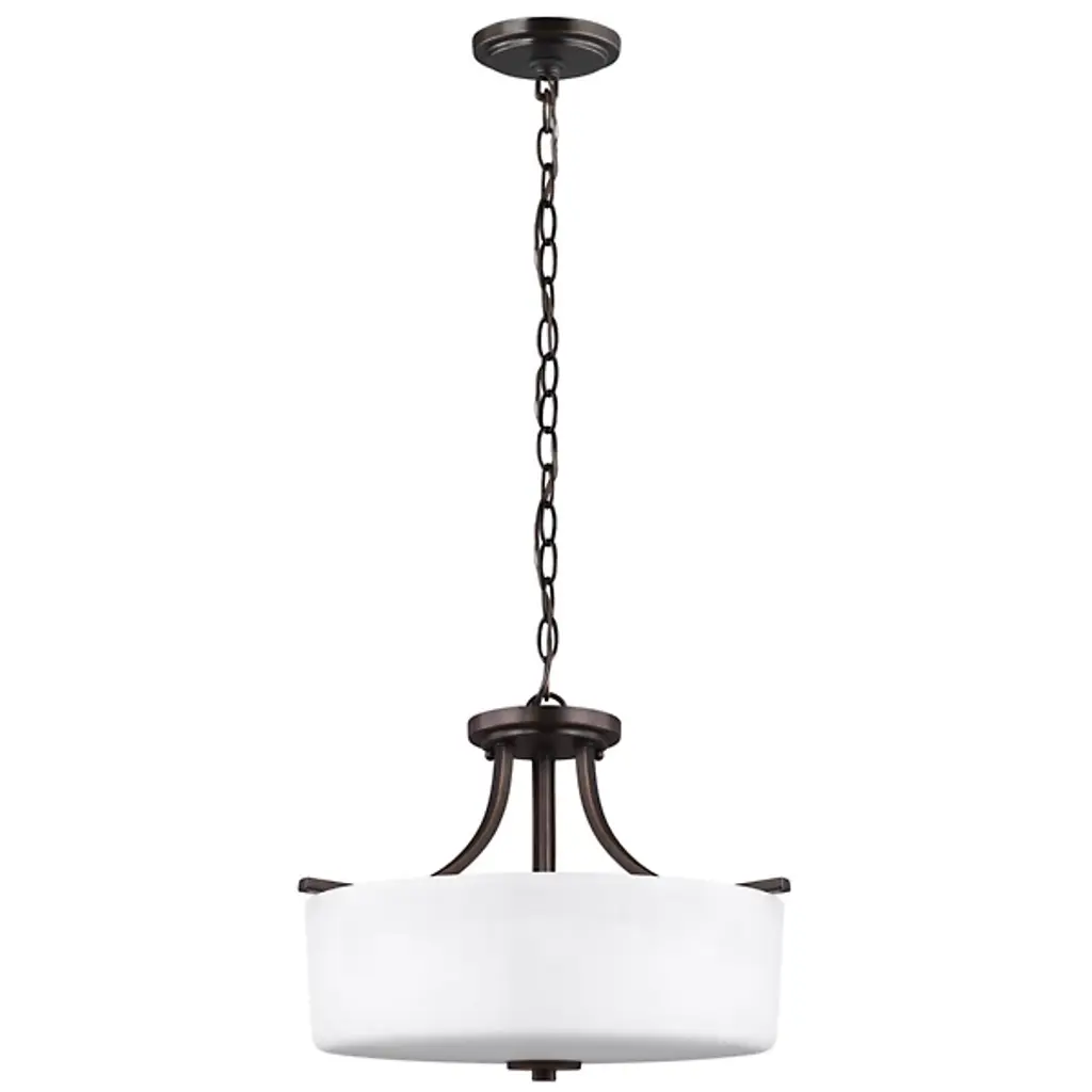 The Canfield Convertible Pendant by Sea Gull lighting is versatile and stylish. As a semi-flushmount or a pendant, this fixture features an etched glass diffuser that distributes a soft glow from the light source within. Curved, hand-brushed steel arms provide structure and clean lines that contrast beautifully with the soft white of the shade. Adds a welcoming atmosphere to any room in your home.