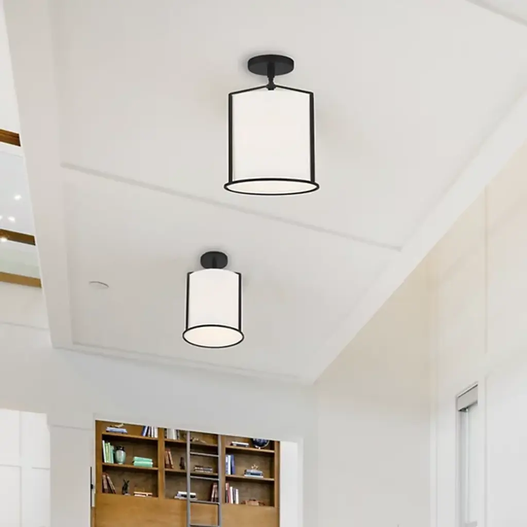 Give your home décor a mid-century modern look with the Carlyn Semi Flushmount by Crystorama. Fine metal has been worked into a collection of slender, steel arms which effortlessly surrounds a hanging drum. Within this drum rests an incandescent lamp which allows vivid light to emanate throughout your surroundings with ease. Your semi flushmount maintains its suspension in midair through attachment to a canopy at your ceiling.