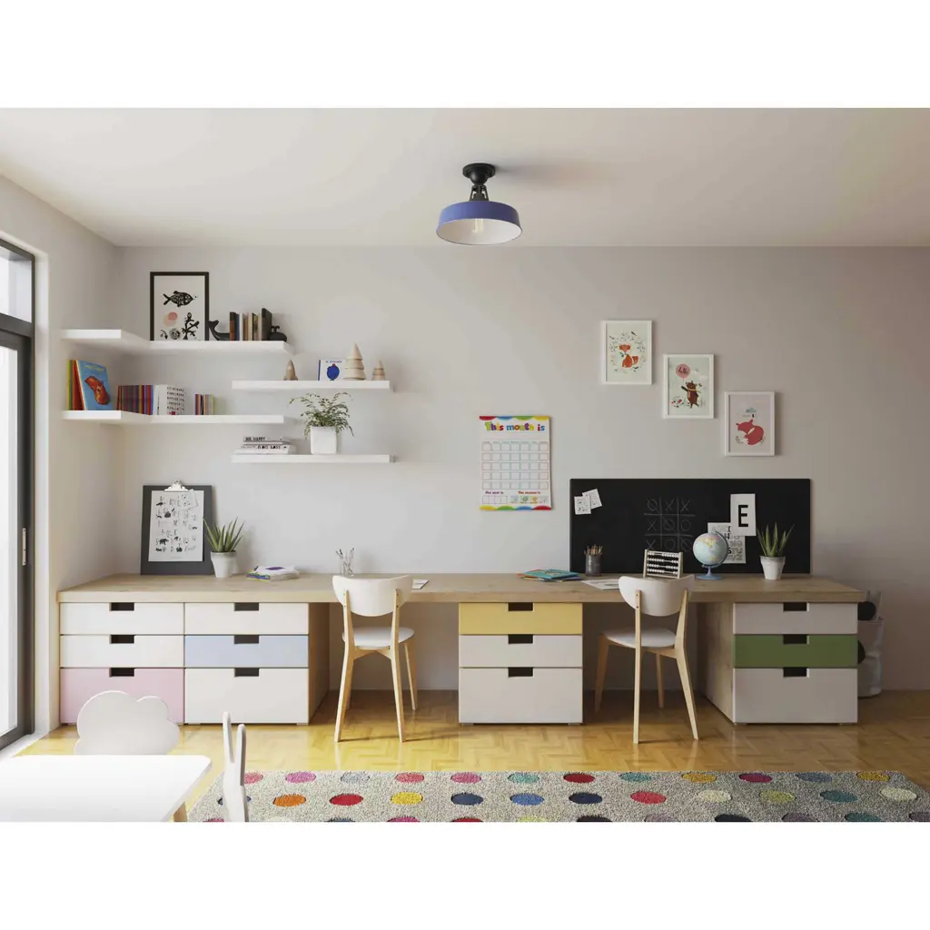 This fun take on the traditional warehouse shade provides excellent task lighting. Take in the simple metal shade coated in a gorgeous navy finish ready to direct a helpful glow. An industrial-style ceiling plate anchors the light fixture in place and adds a touch of urban flair.