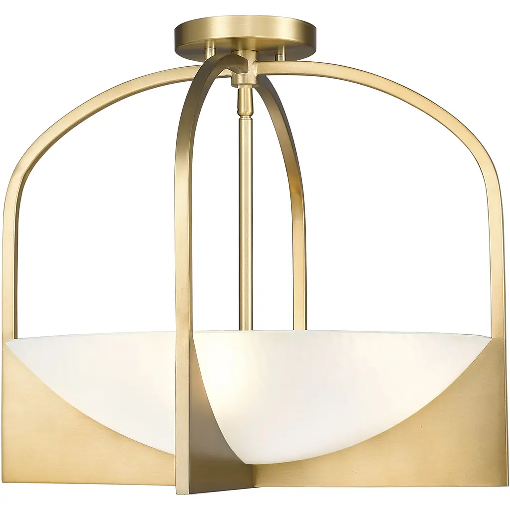 Give your living space a mid-century modern aesthetic with the Cerne LED Semi-Flushmount by Visual Comfort Modern. Designed by Kelly Wearstler, this light fixture is defined by its elegantly arching framework of metal. A disc-like shade of fine acrylic beautifully tempers the light emanating from an integrated LED. Cerne’s brightness level can be easily adjusted when you pair this furnishment with an ELV dimmer.