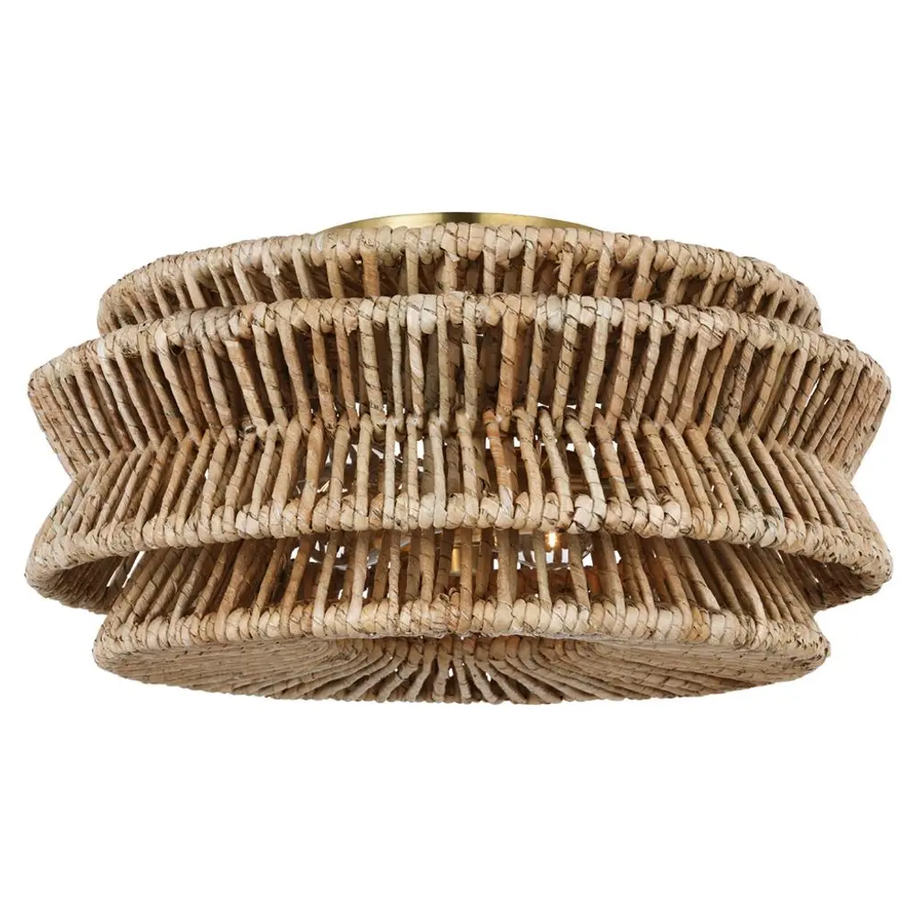 Antigua Large Drum Semi-Flush Mount in Polished Nickel and Natural Abaca