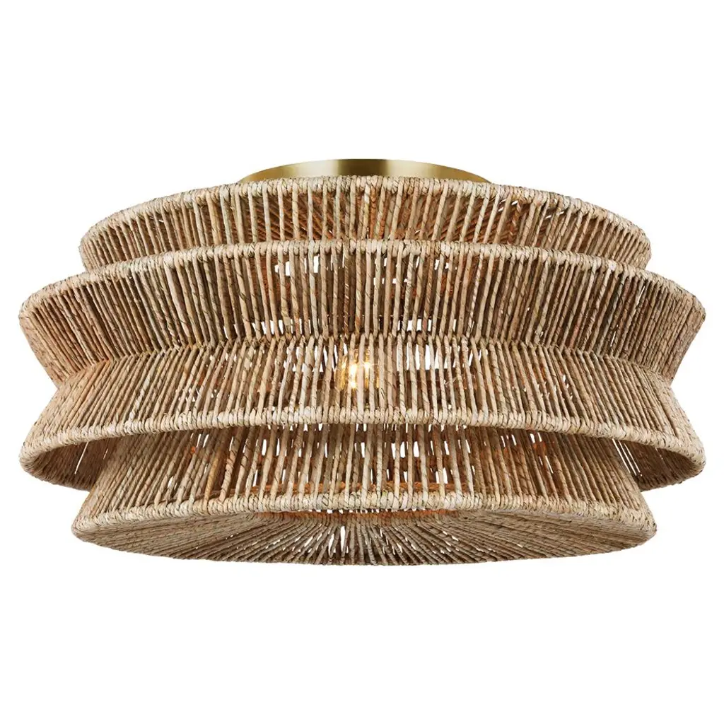 Antigua XL Semi-Flush Mount in Polished Nickel and Natural Abaca