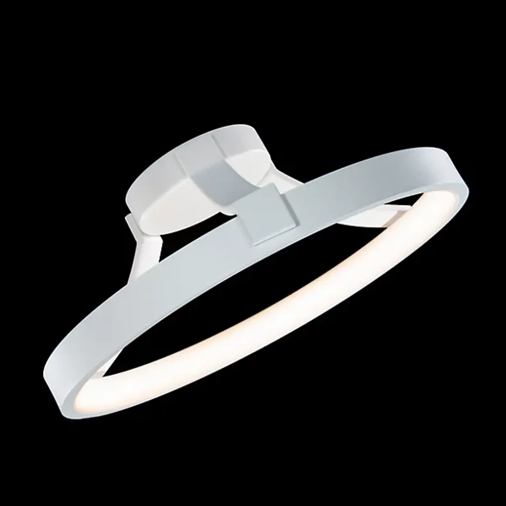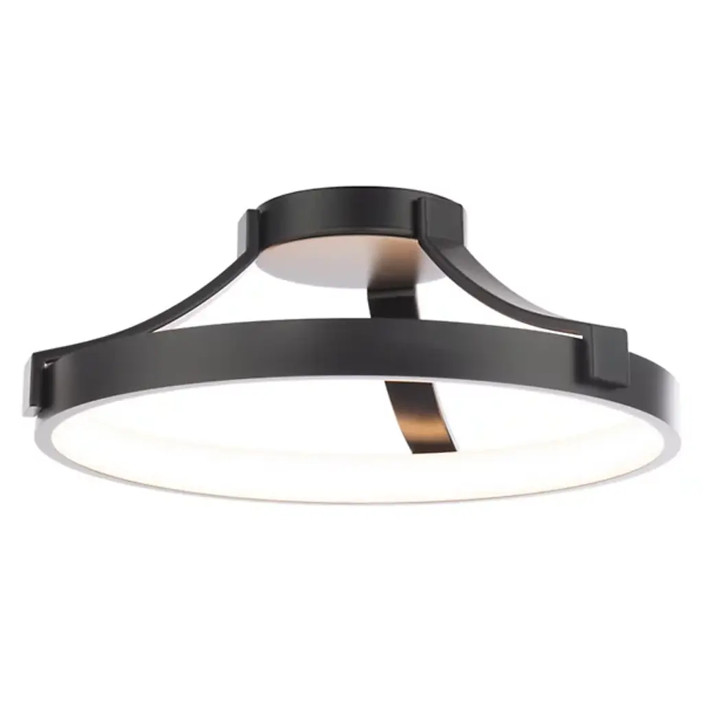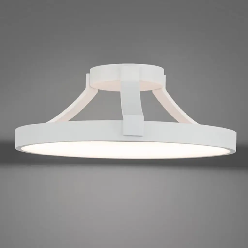 Enliven inside spaces with the smooth lines and refined design of the Chaucer LED Semi Flushmount from dweLED. Retained from above by a sleek disc canopy, it extends three curving arms down to a horizontal ring housing with LED lamping set into its inner surface. A silicone diffuser sweeps around the inside of the ring, transforming glare from the bright, damp-listed lamping into a pleasing wash of illumination.