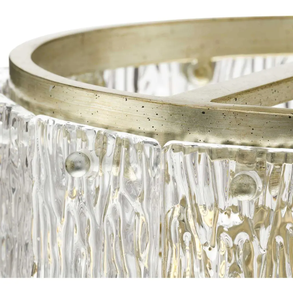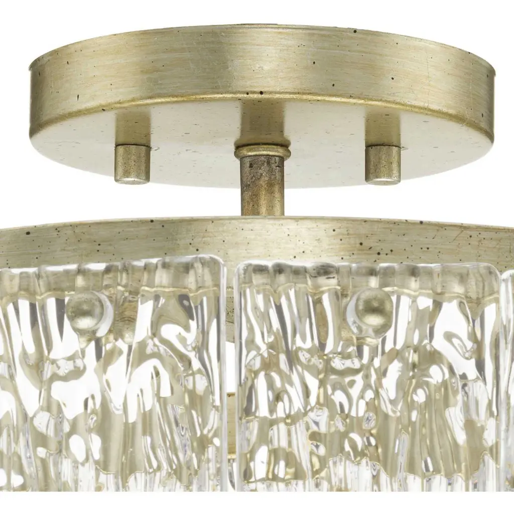 Add luxury and glamour to your home with the elegant Chevall Collection. The Semi-Flush Mount Light combines a layer of distinctive artisanal glass with a richly burnished, Gilded Silver frame. Glimmering illumination creates a sparkling ambiance that fills the room. This fixture is part of the Progress Lighting Design Series, a lighting collection offering fashionable styles and affordable luxury lighting for the home.