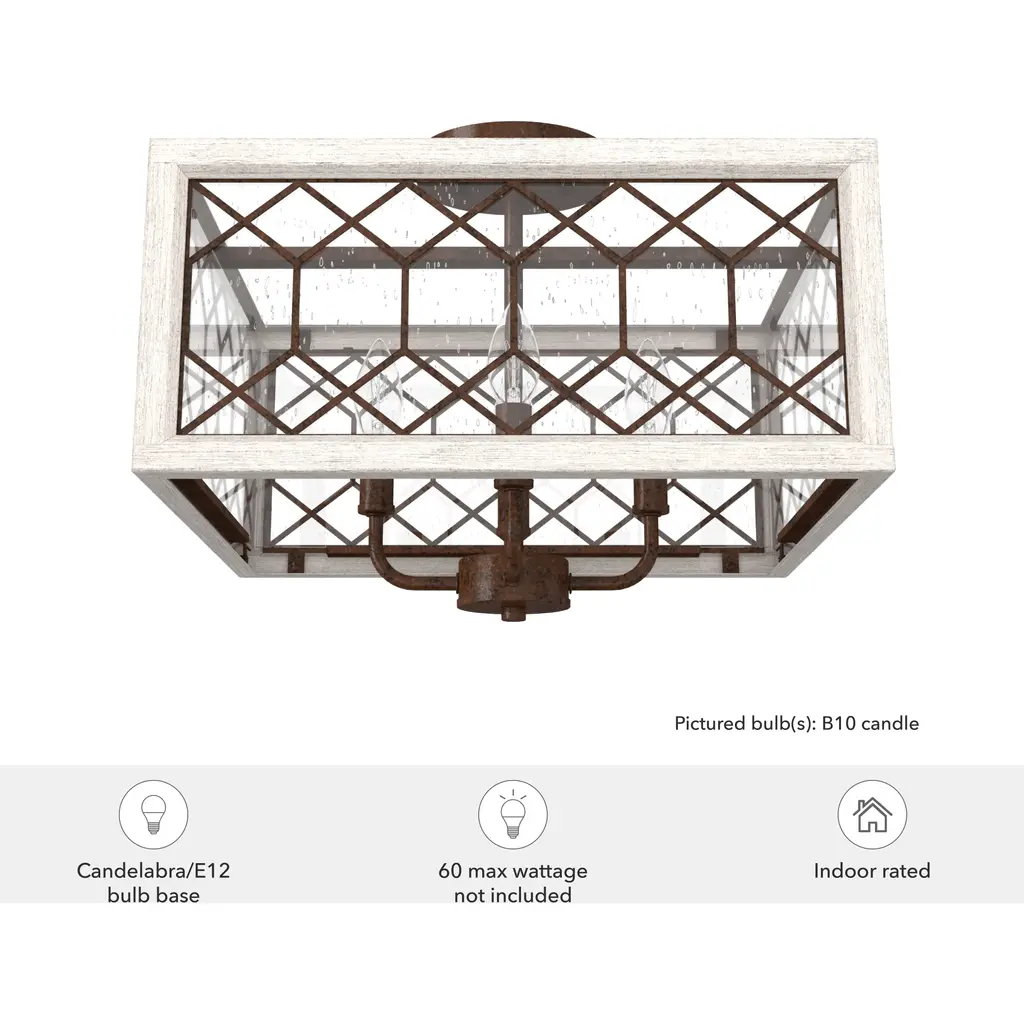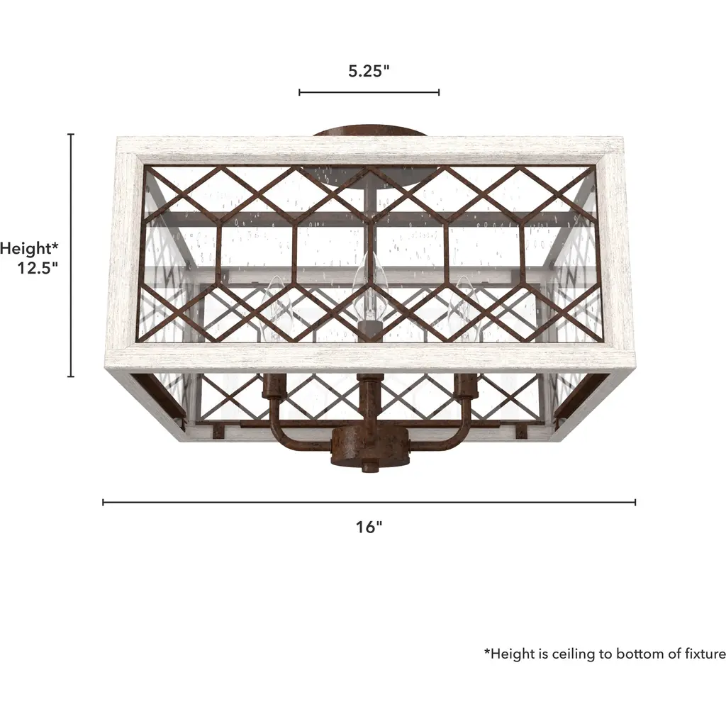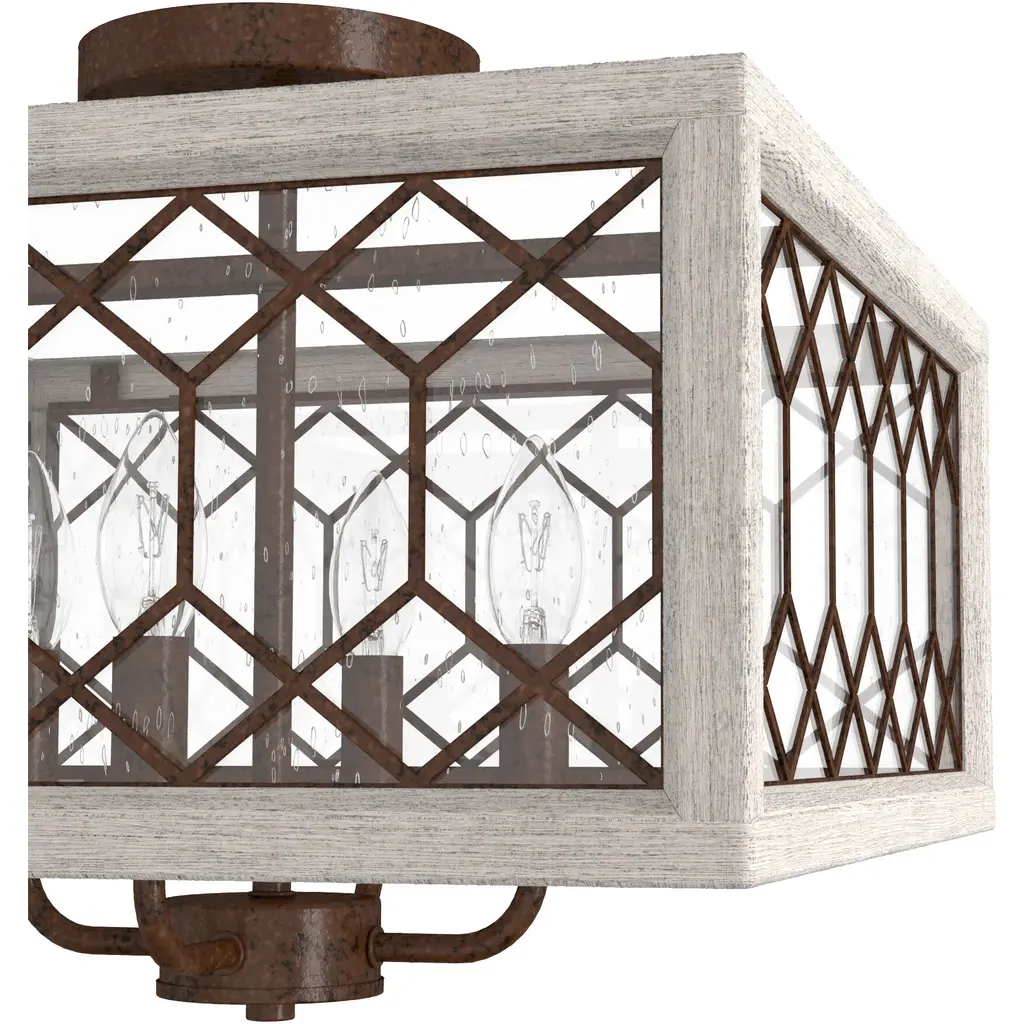 Chevron 4 Light 16 Inch Textured Rust And Distressed White Semi-Flush Mount Ceiling Light