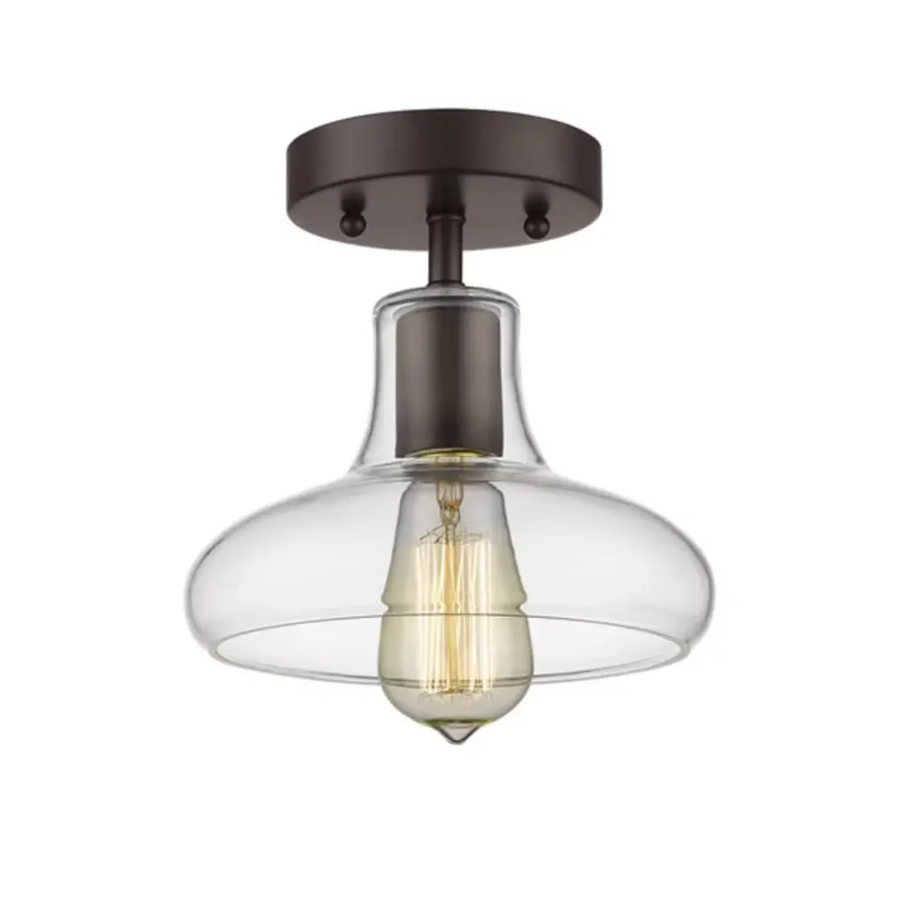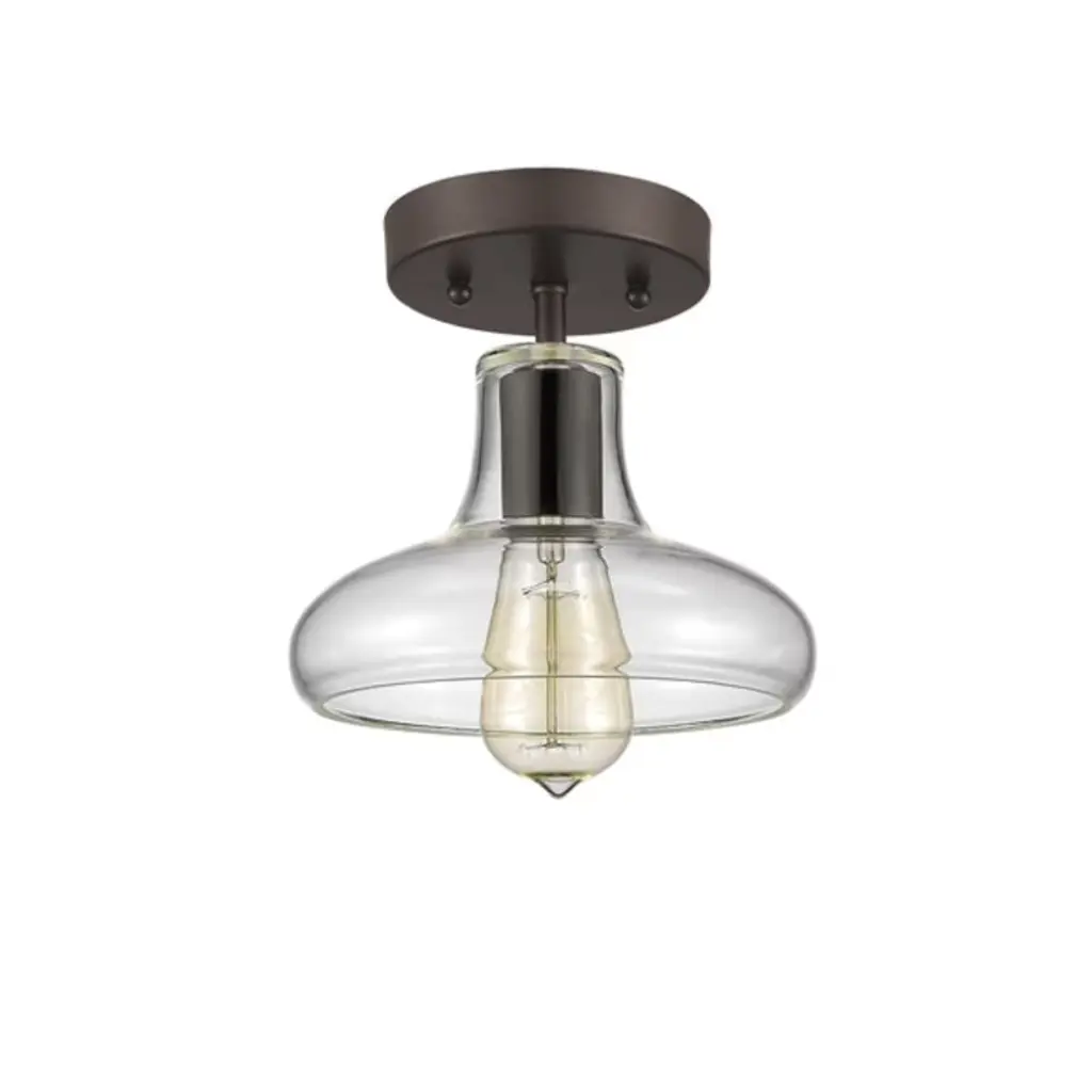 The Chloe Lighting Dickens 8″ Industrial Semi‑Flush Ceiling Fixture brings a rugged yet refined aesthetic to any indoor space. This stylish fixture features a sturdy rubbed bronze metal base and matching canopy topped by an 8-inch smoked fluted glass shade. Measuring approximately 8″ in diameter and projecting just 9″ from the ceiling, it provides soft, directional lighting ideal for entryways, hallways, home offices, or over kitchen islands. The vintage-inspired industrial design combines clean lines with textured glass to evoke workshop charm and modern sophistication. Easy to install with standard mounting hardware and compatible with a wide range of bulb styles, this ceiling light effortlessly blends function and fashion. Key Features: Finish & Frame: Durable rubbed bronze metal construction with industrial aesthetic Shade: 8″ diameter smoked fluted glass, semi‑flush design Lighting Specs: Uses one 60 W medium-base bulb (not included); works with LED/eco bulbs Installation: Standard junction‑box mounting; includes canopy, bracket, screws Style Match: Complements industrial, steampunk, farmhouse, and vintage modern décor